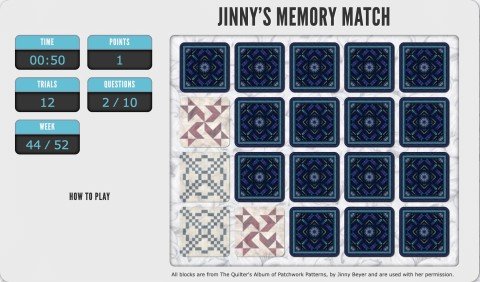 Is it crazier to think that the year is almost over already, or that you haven't become a master at Jinny Beyer's Memory Match Game? Play today and decide for yourself which seems more unlikely.
