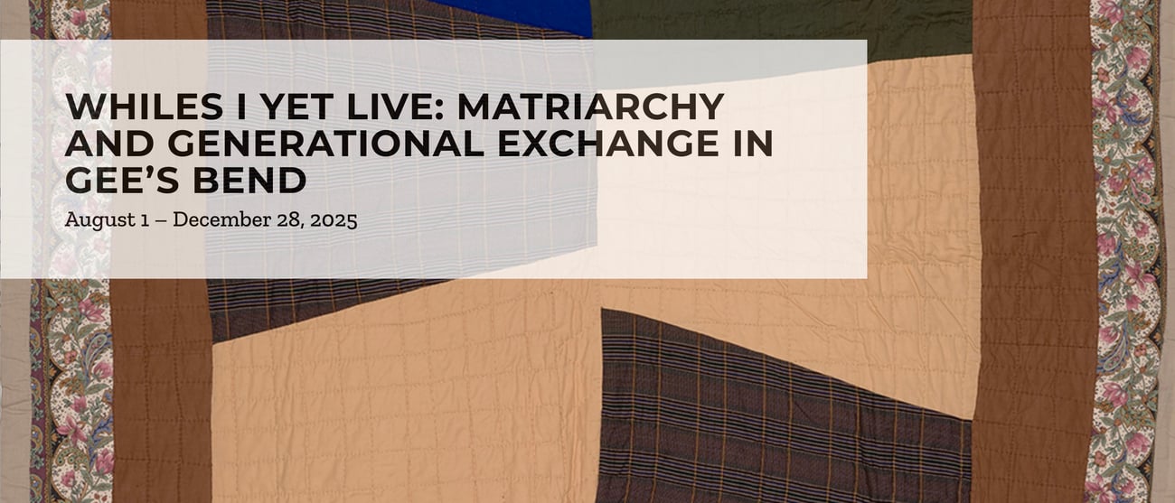 From the National Quilt Museum: "A testament to the survival of ancestral knowledge systems, the exhibition, Whiles I Yet Live: Matriarchy and Generational Exchange in Gee’s Bend presents a selection of over twenty quilts, spanning nearly a century of artistic practice within the community. This exhibition borrows its title from the 1955 song “Give Me My Flowers” by The Consolers, which inspired the later Christian Gospel performed by Reverend James Cleveland. The hymn was re-recorded by Boykin-based quilters Mary Ann Pettway, China Pettway, Lorene Pettway, and Nancy Pettway in 2016."