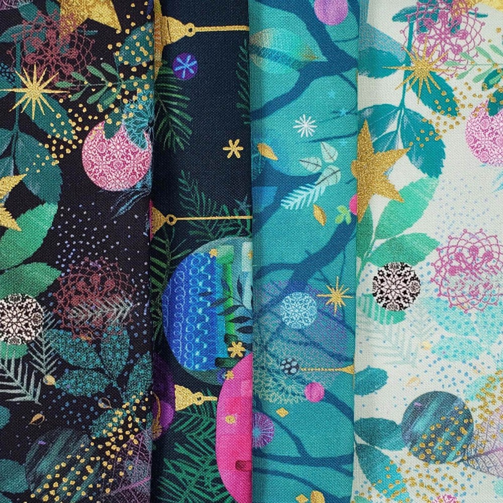 Rich jewel tones set the stage for this beautiful holiday collection, featuring ornaments, trees, starry skies, and a nativity scene — all rendered in a charming modern-vintage style. |
