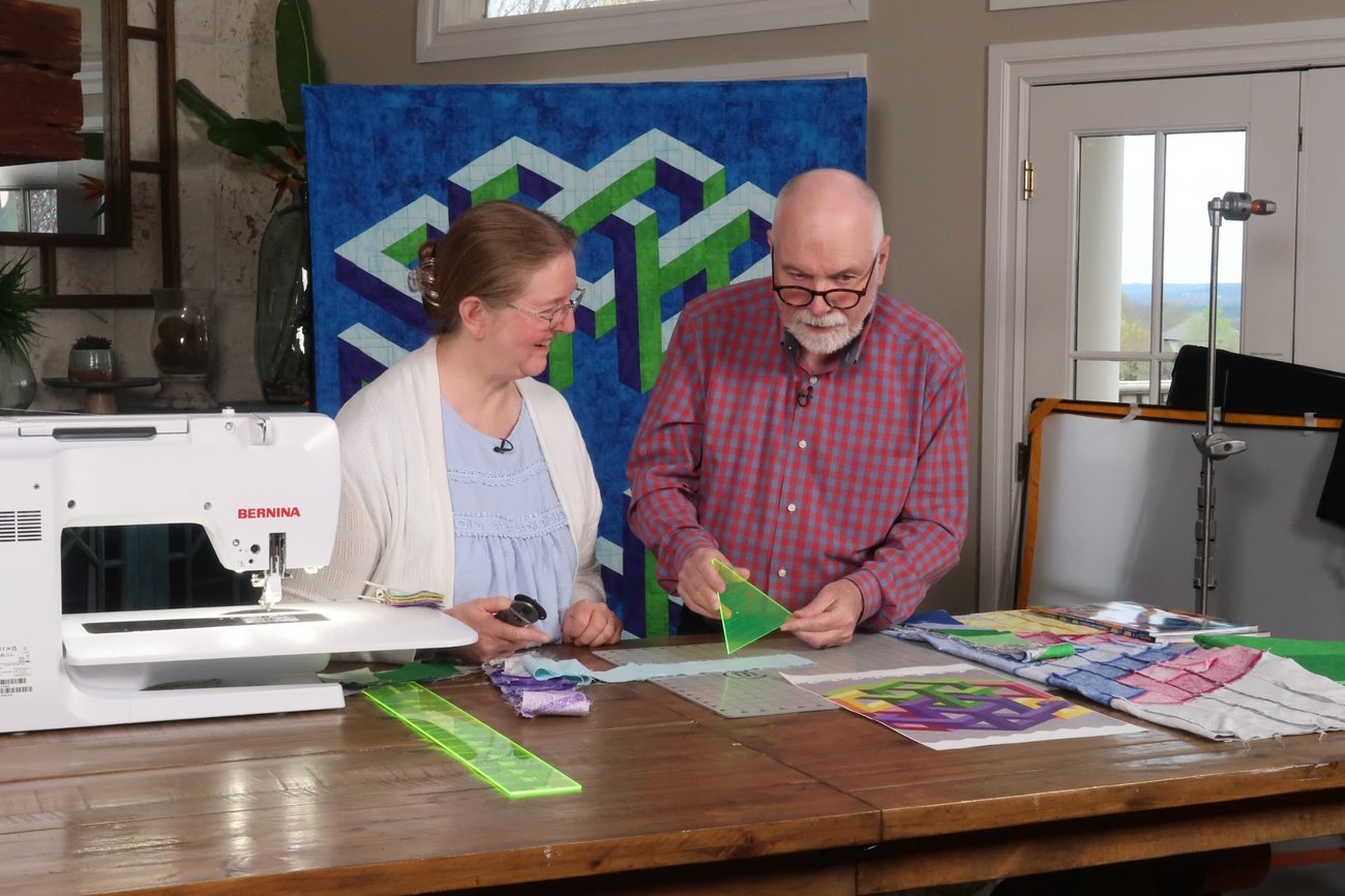 Ruth Ann Berry begins our new show off by discussing how a column-based design starts on isometric graph paper. Assembly begins with creating strip units, which are then sub-cut and arranged in color order. She then shares how to construct the columns, offering tips for tracking color changes within each unit and avoiding the dreaded curved columns.