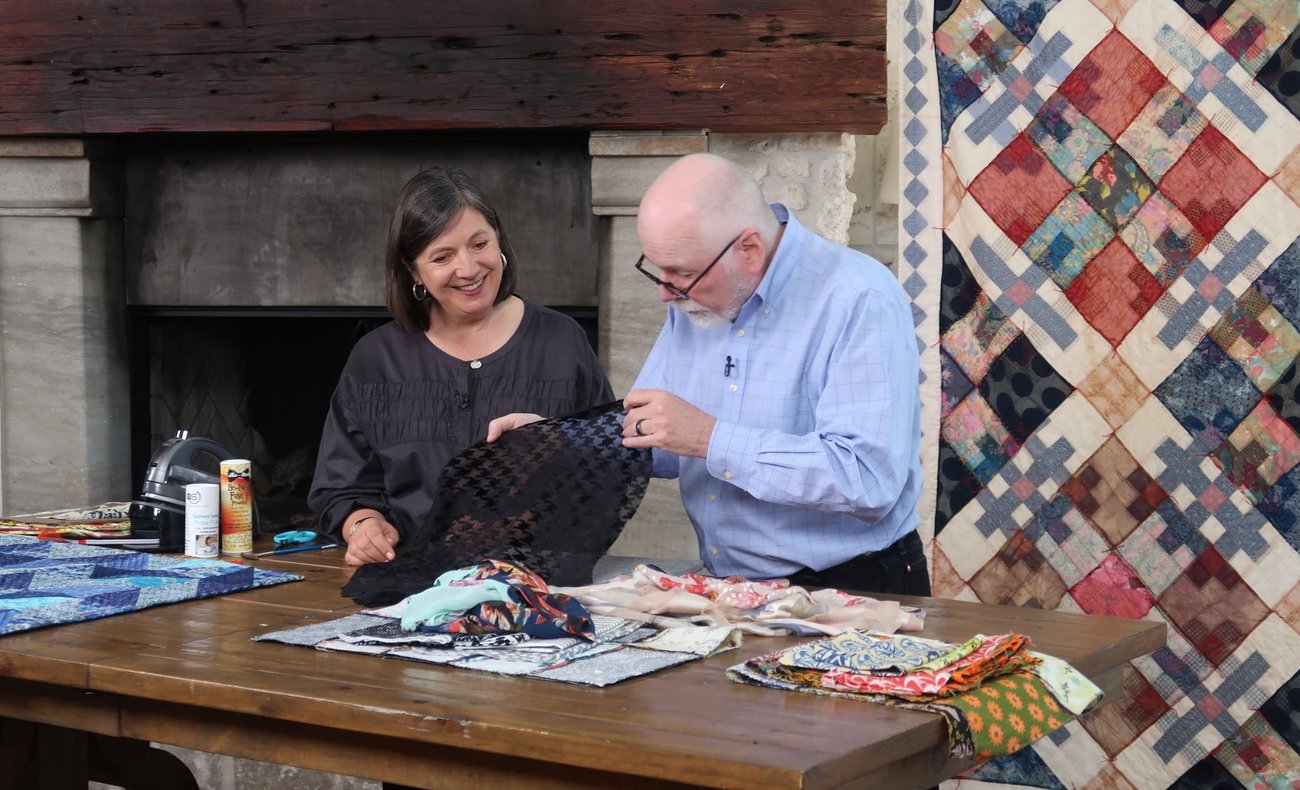 Julia McLeod shares how thrifted polyester sheer fabrics when layered over cotton prints create a unique secondary pattern and a completely new fabric in our latest show. See examples of sheers combined with black-and-white prints, colorful designs, and florals that feature large areas of negative space. Then, learn how to create even more depth and interest by trapping fussy-cut prints (flowers, petals, objects) between two stitched layers, then carefully cutting away areas of the sheer top layer to reveal the underlying print.