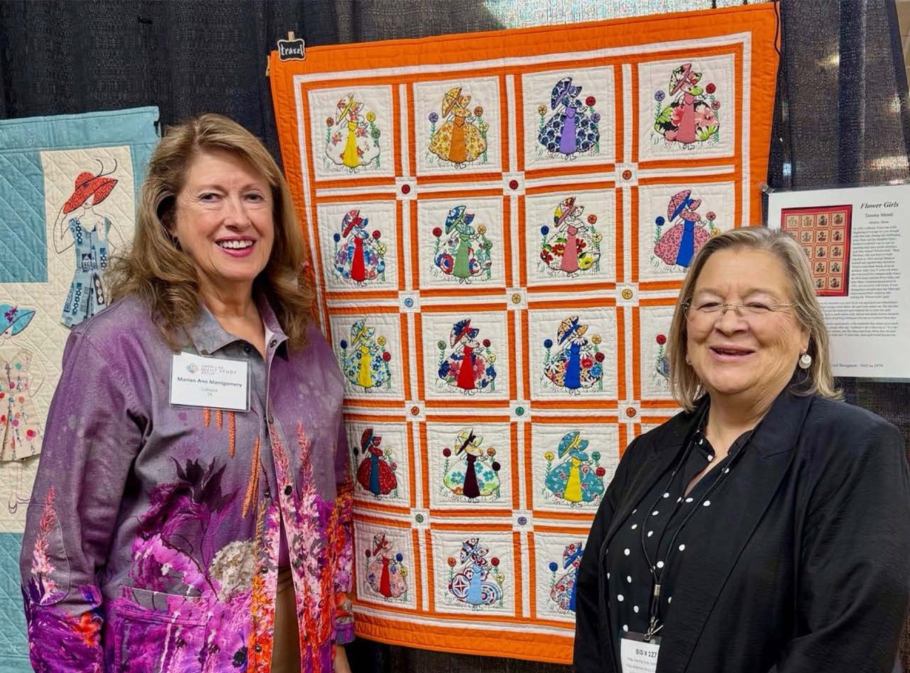 (Above Photo: Quilt maker Tammy Mendl with the Museum’s Curator of Clothing and Textiles, Dr. Marian Ann Montgomery, at the recent American Quilt Study Group symposium in Portland, Maine, where the quilt was exhibited) |