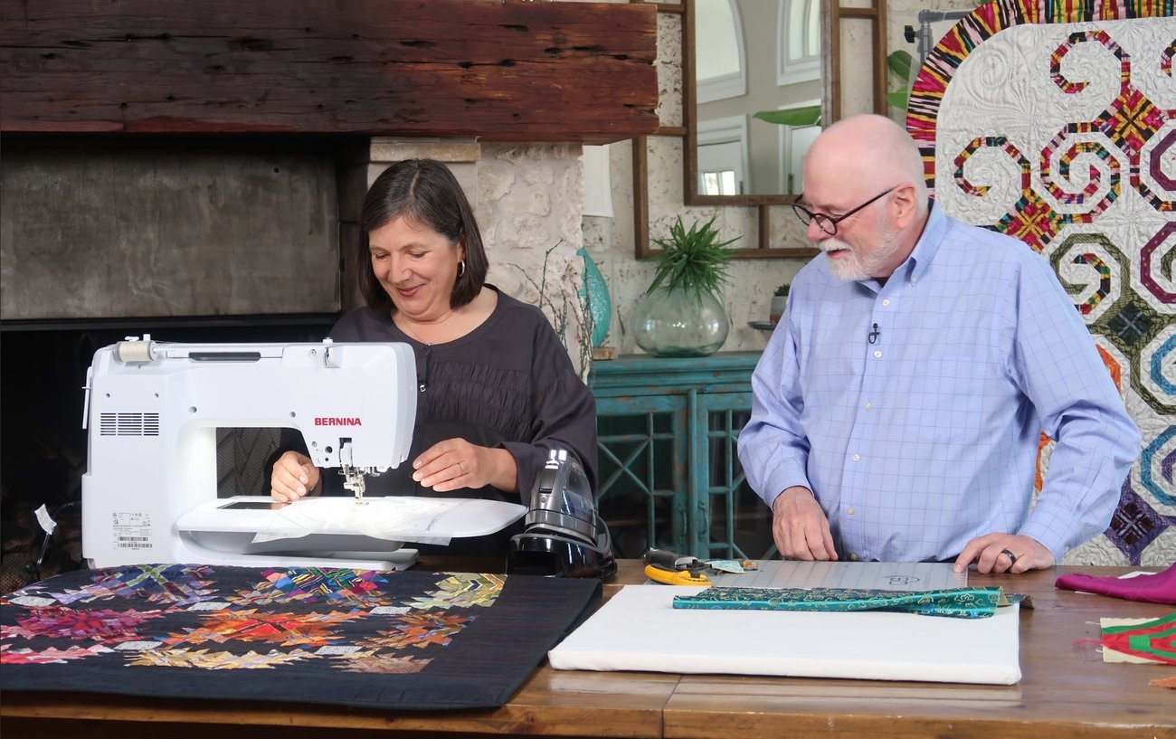 Julia McLeod begins our show by explaining how a non-woven stabilizer helps tame slippery silk fabric, making it easier to piece, trim, and press a pineapple block with this luxurious material. She then shares tips for creating stunning color variations through strategic cutting—and explains why pinking shears are your best friend when it comes to preventing fraying.