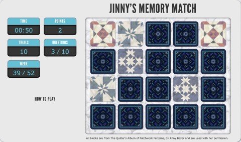 Do you have a casual interest in matching quilt blocks together? Or are you past the point of no return and are a die-hard Jinny Beyer's Memory Match fan? Play the game and find out if you're the former or the latter!