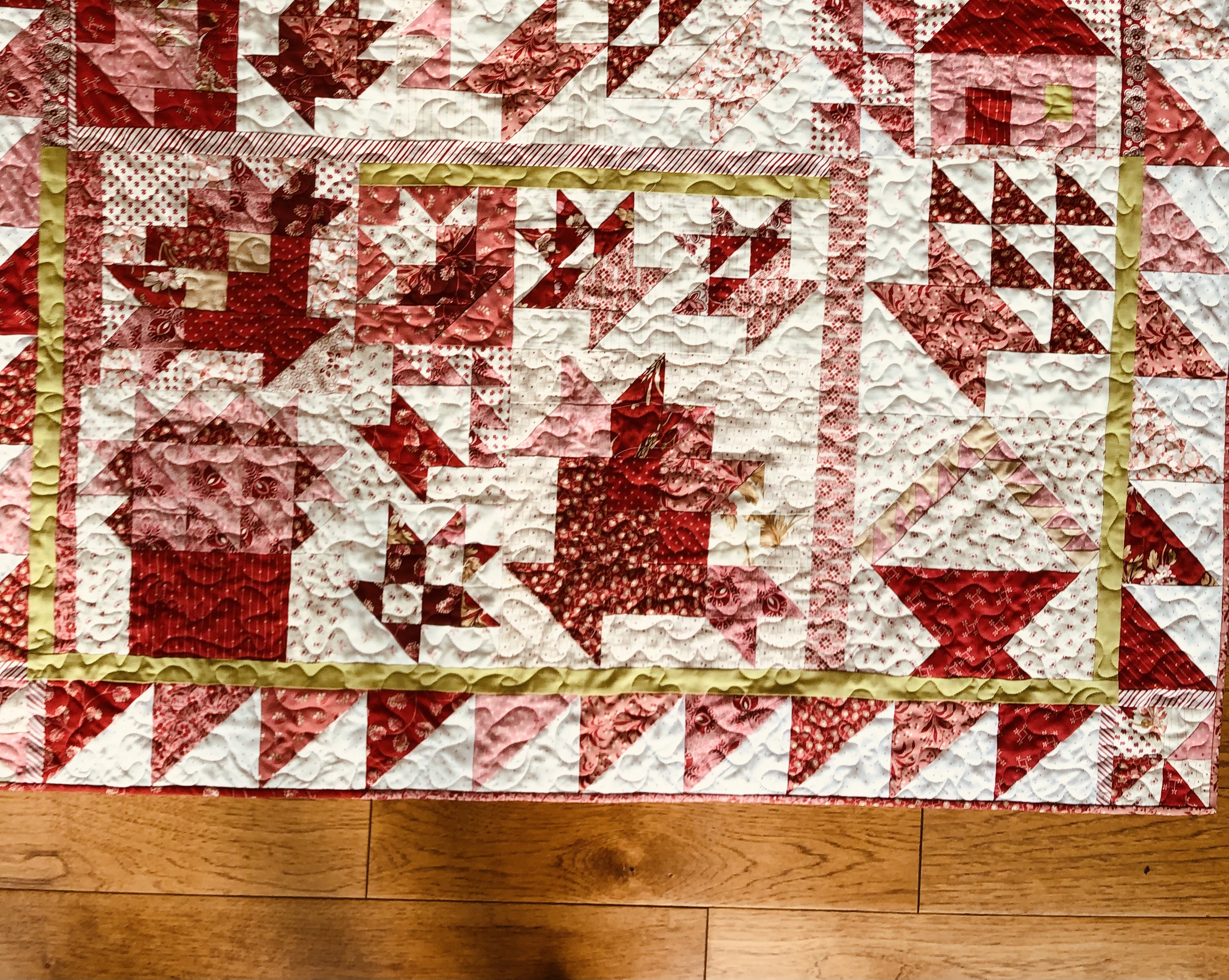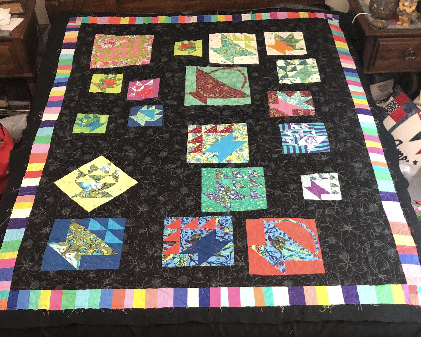 Well, here it is, the end of 2022, and I finally have finished my 2021 BOM quilt! I apologize that the photo is not centered....