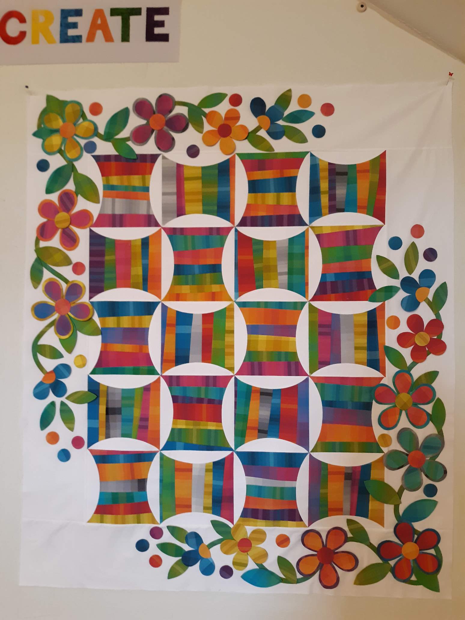 I might have put a white block in the 3 corners and made the flowers go more into the white block and trail the vines into the flowers and not go around the corners. I am always just trying to