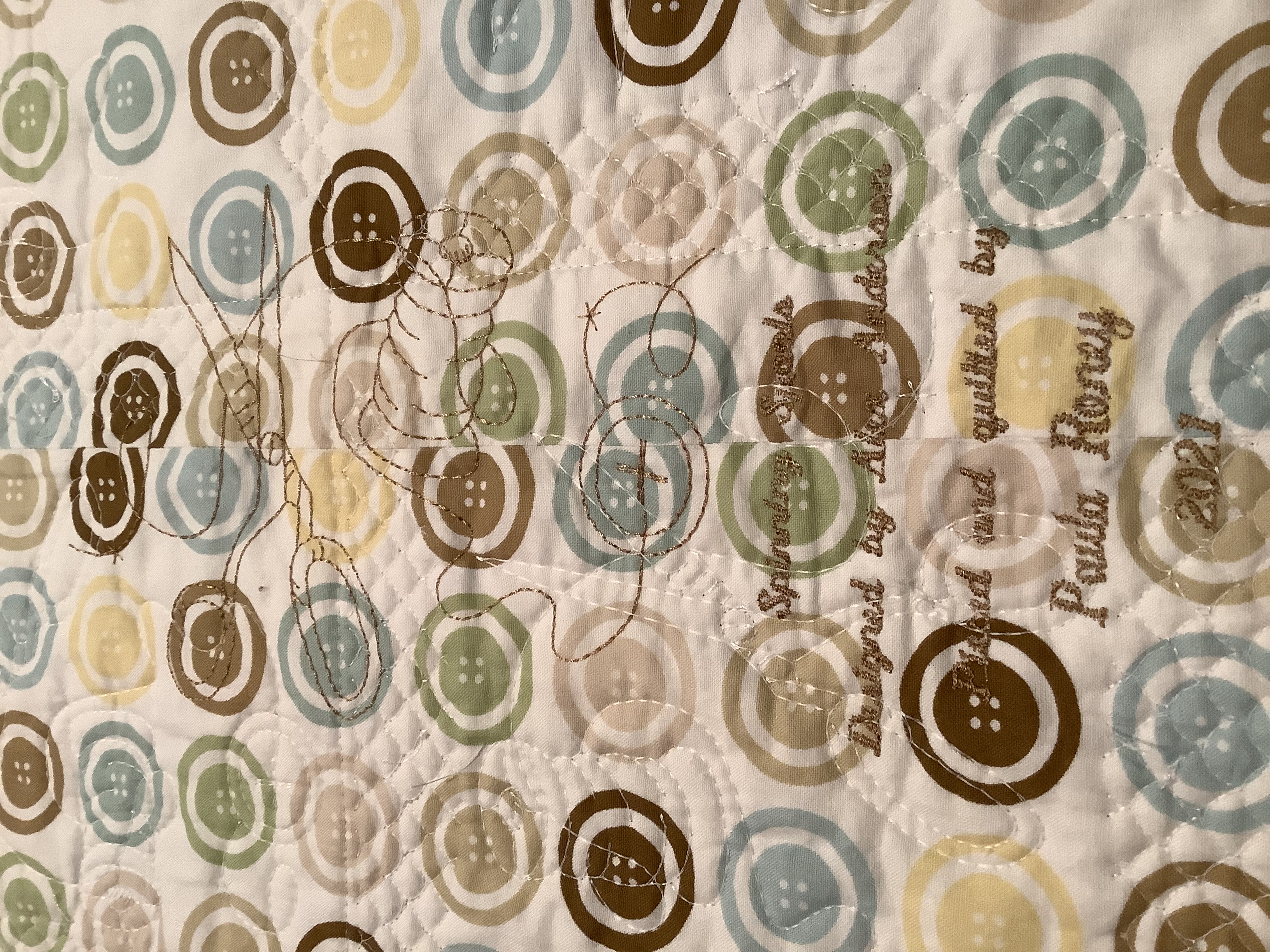 I finished my Spinning Spools! This was my first time using Print and Piece Fuse Lite and I was a bit skeptical. Now I love it for how easy it was to use. And, it got softer as I sewed on the appliqués, manipulating it through the machine. I sewed the borders on, then the appliqués. Thank you Alex.