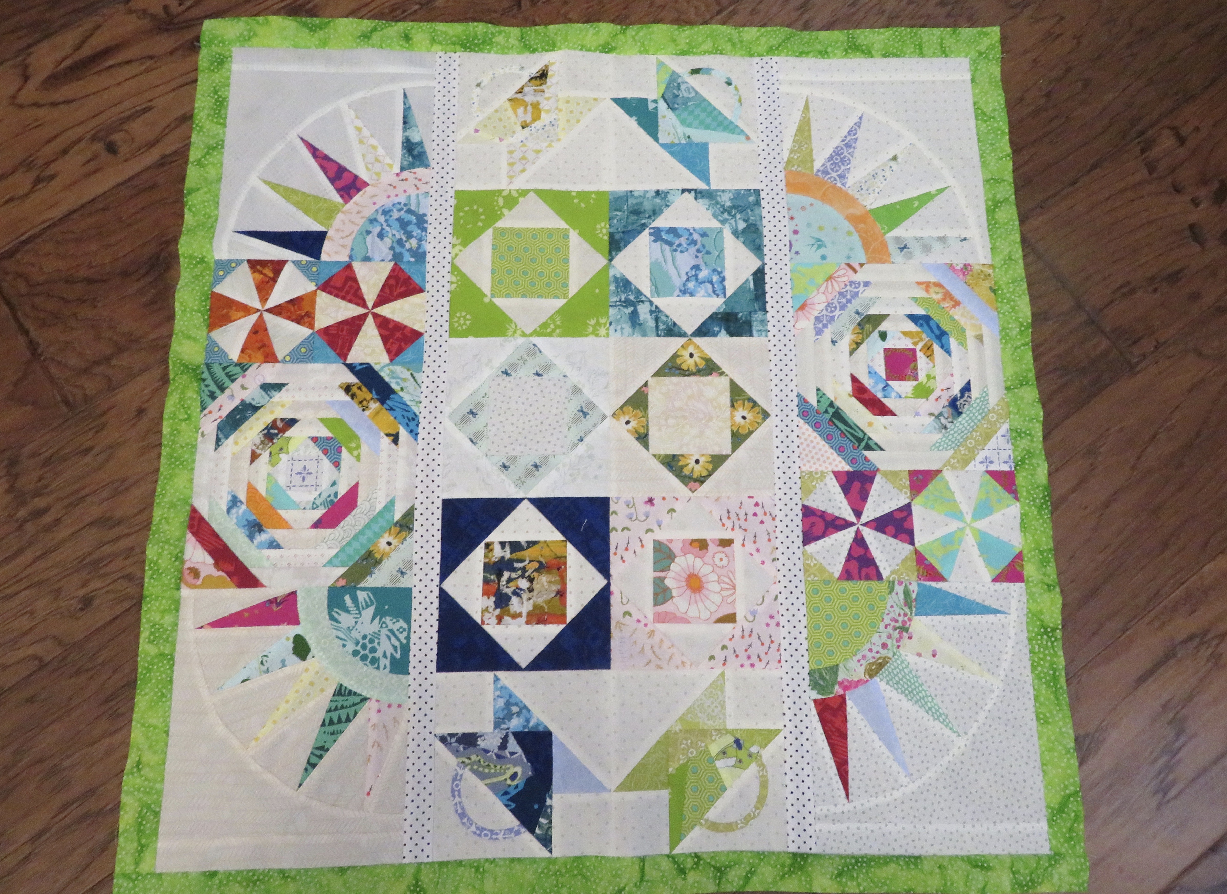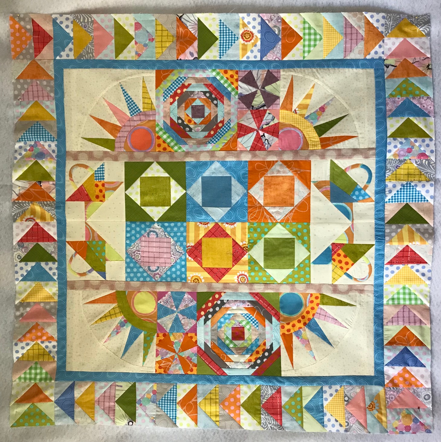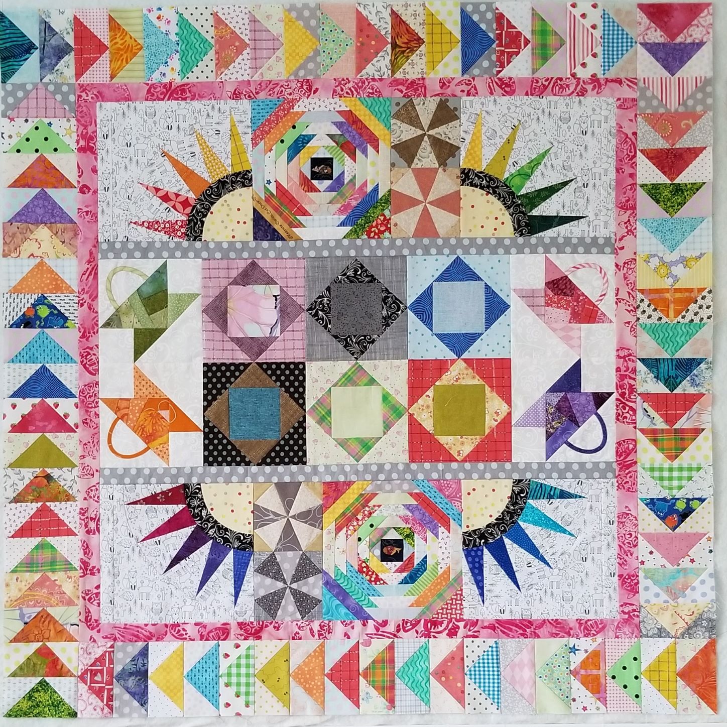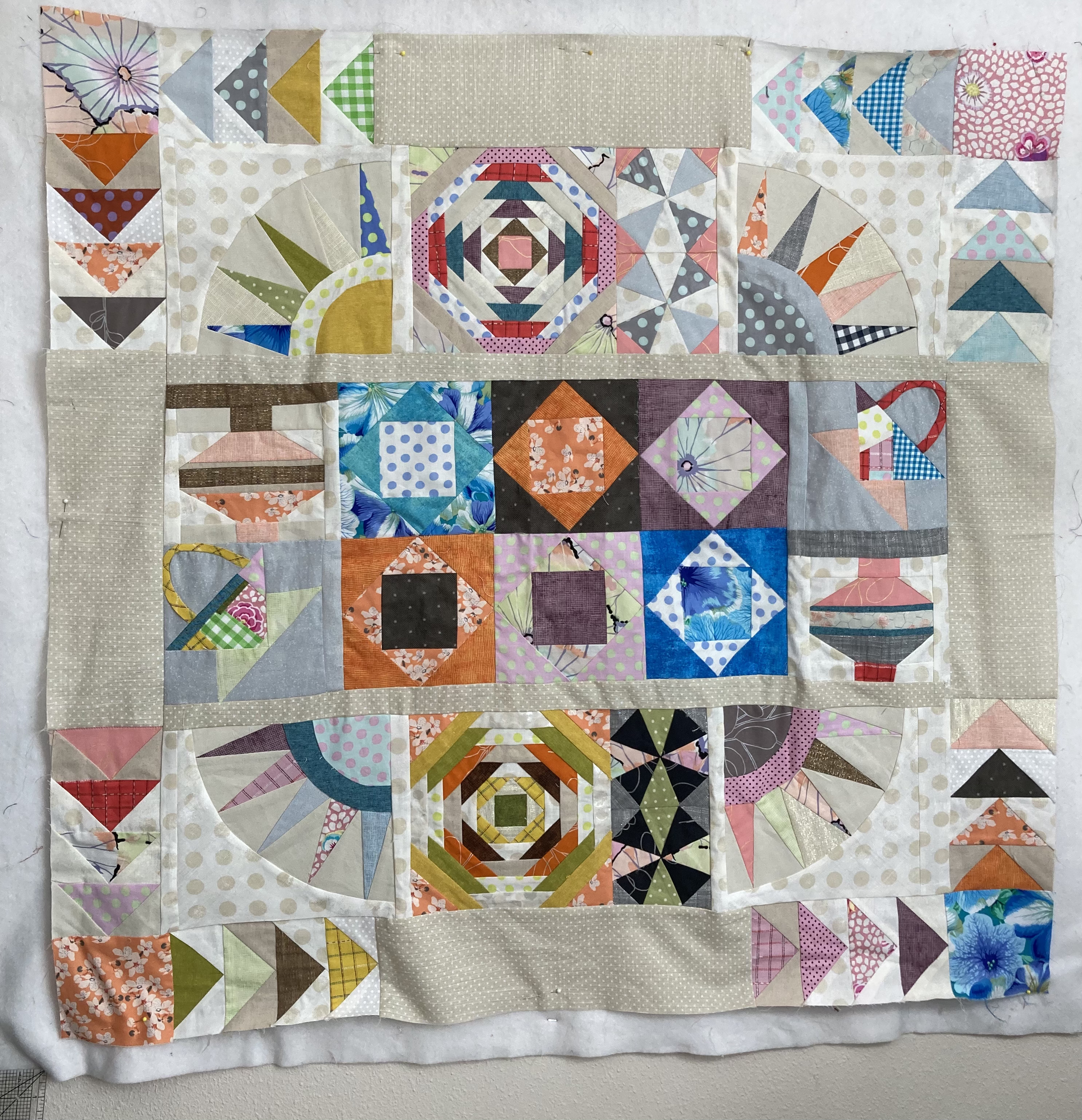 It's Done!! I decided to give myself a break and not do my usual "going off on my own tangent" thing. I subbed in some of my own fabrics, swapped out the linen-like ones in the kit for similar quilting cotton but otherwise followed the pattern in color and design. My mind is a bit busy now and I needed this project to get me back into the quilting groove. I am so amazed and thrilled to see the variation of block placements and colors choices. Bravo to All! Many thanks to Alex for guiding us through this. Can't say I love PP but it's in my toolbox now.