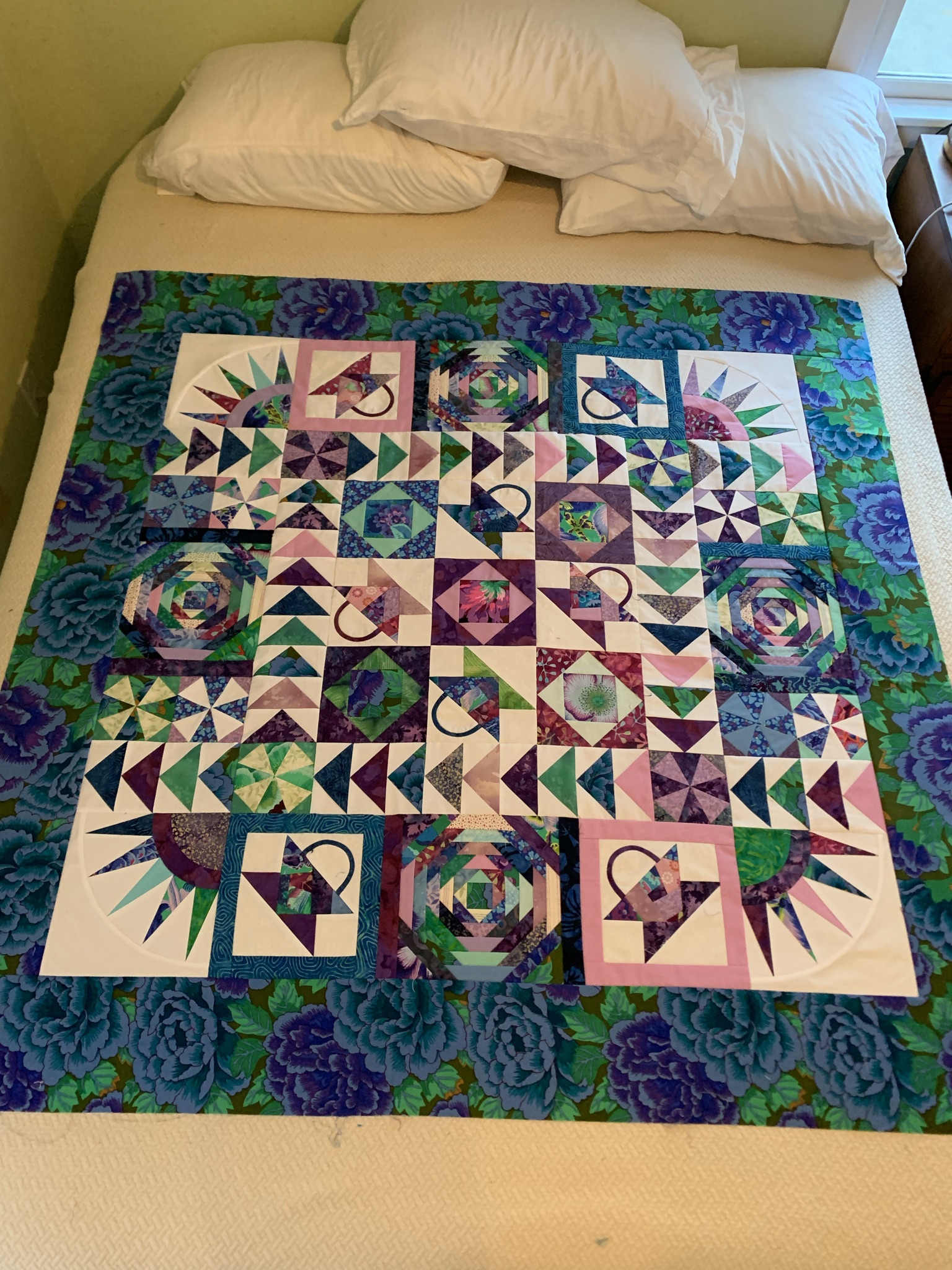 Well, here it is, the end of 2022, and I finally have finished my 2021 BOM quilt! I apologize that the photo is not centered....