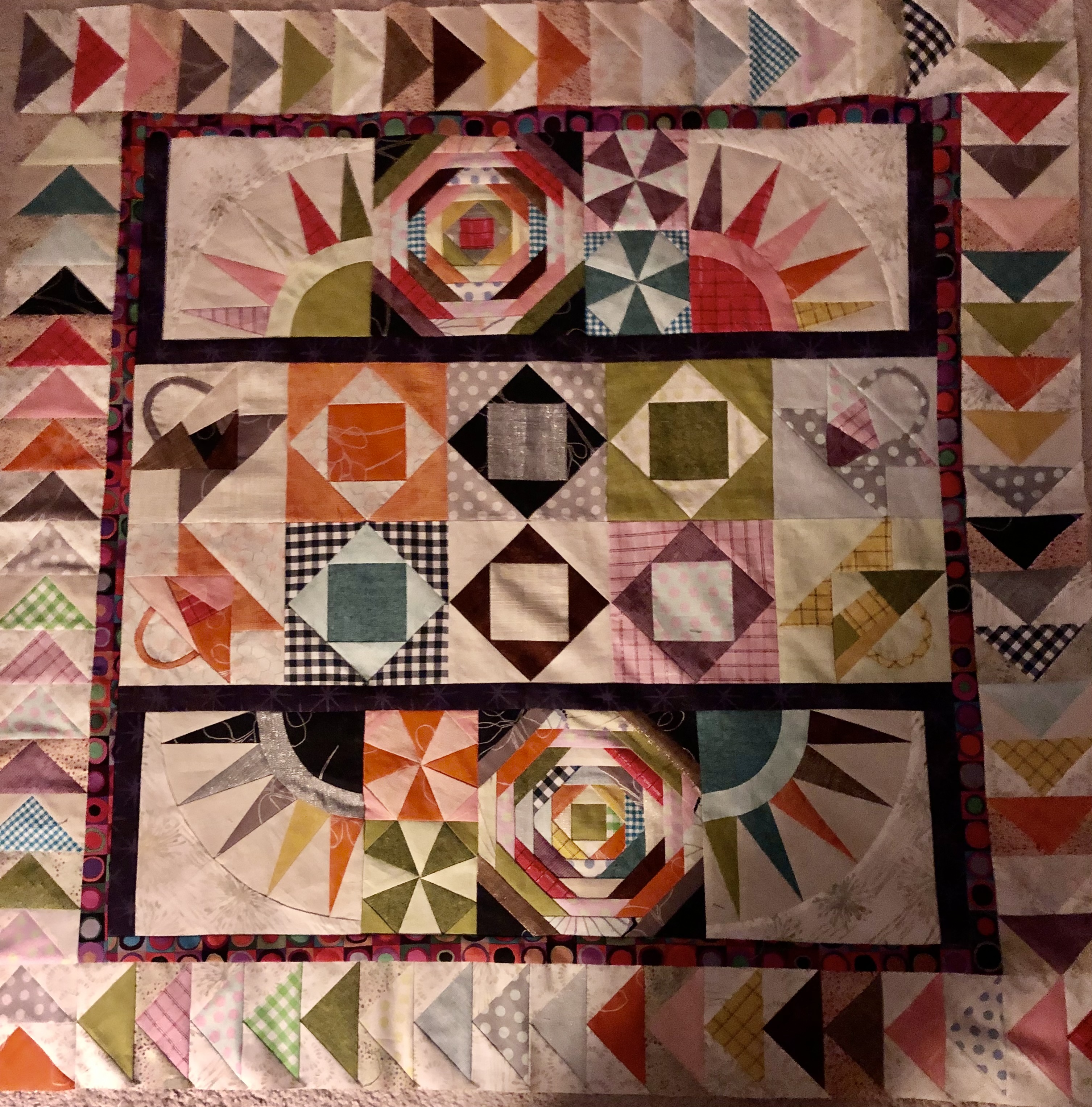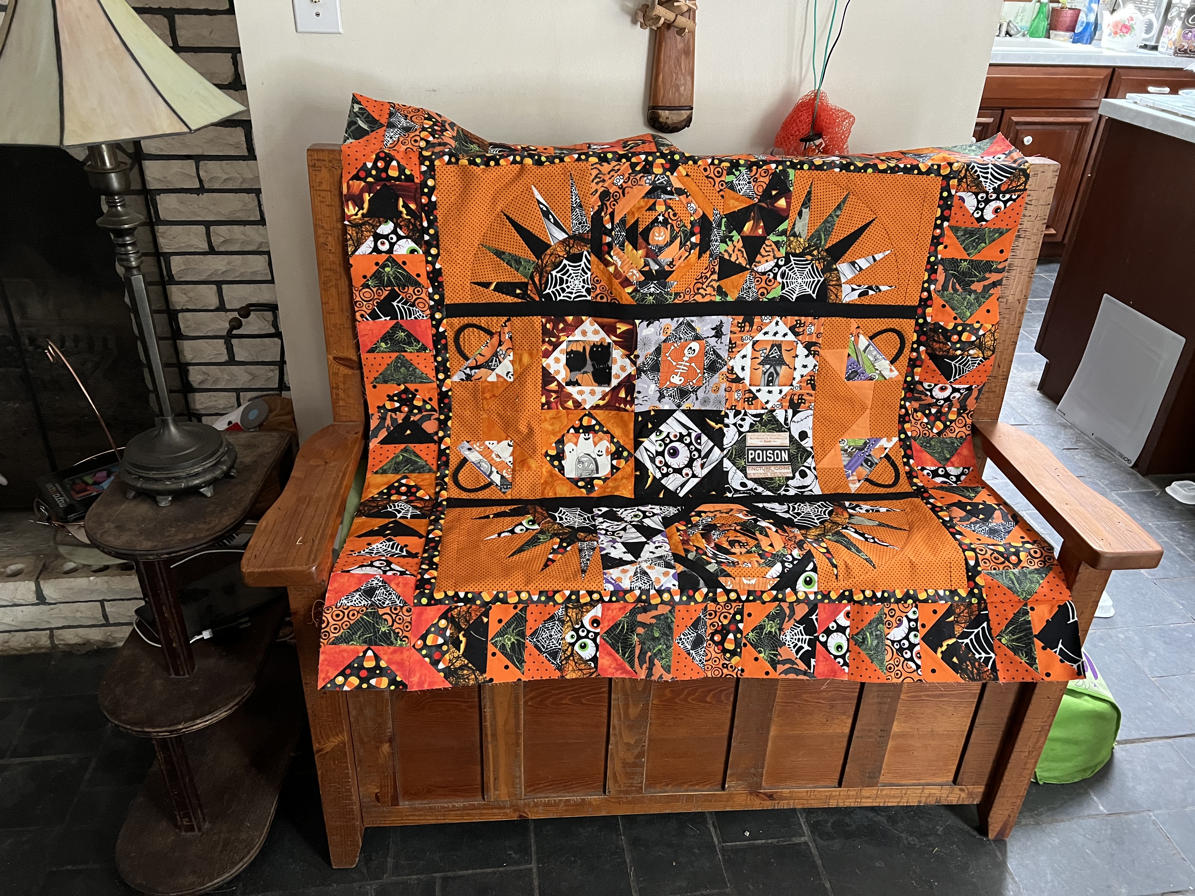 Well, here it is, the end of 2022, and I finally have finished my 2021 BOM quilt! I apologize that the photo is not centered....