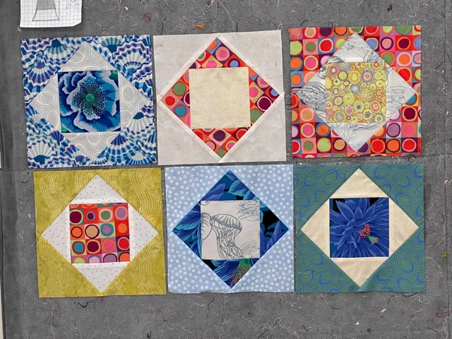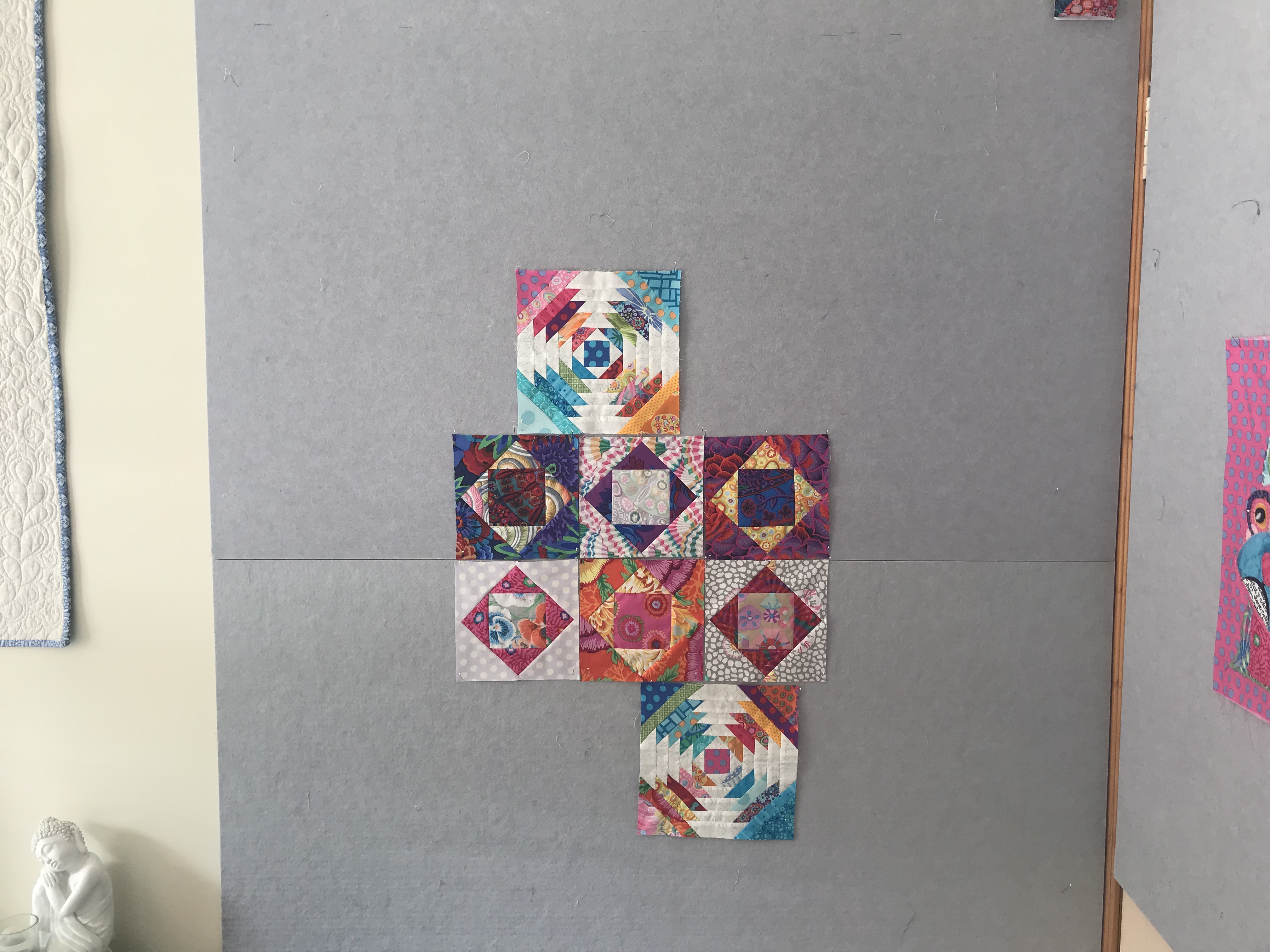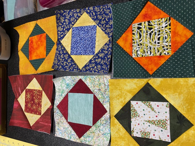 Dotti J, That is a good tip. Always check to make sure a triangle point did not get roll under when placing under the presser foot.Originally posted by Dottij View PostThe paper piecing class that’s been a challenge. Suggestion do not try to sew your pieces while the wind is blowing! Nice fall day…wind blowing in….twisting my fabric under the pressure foot and ME NOT PAYING ATTENTION, this is my layout so far