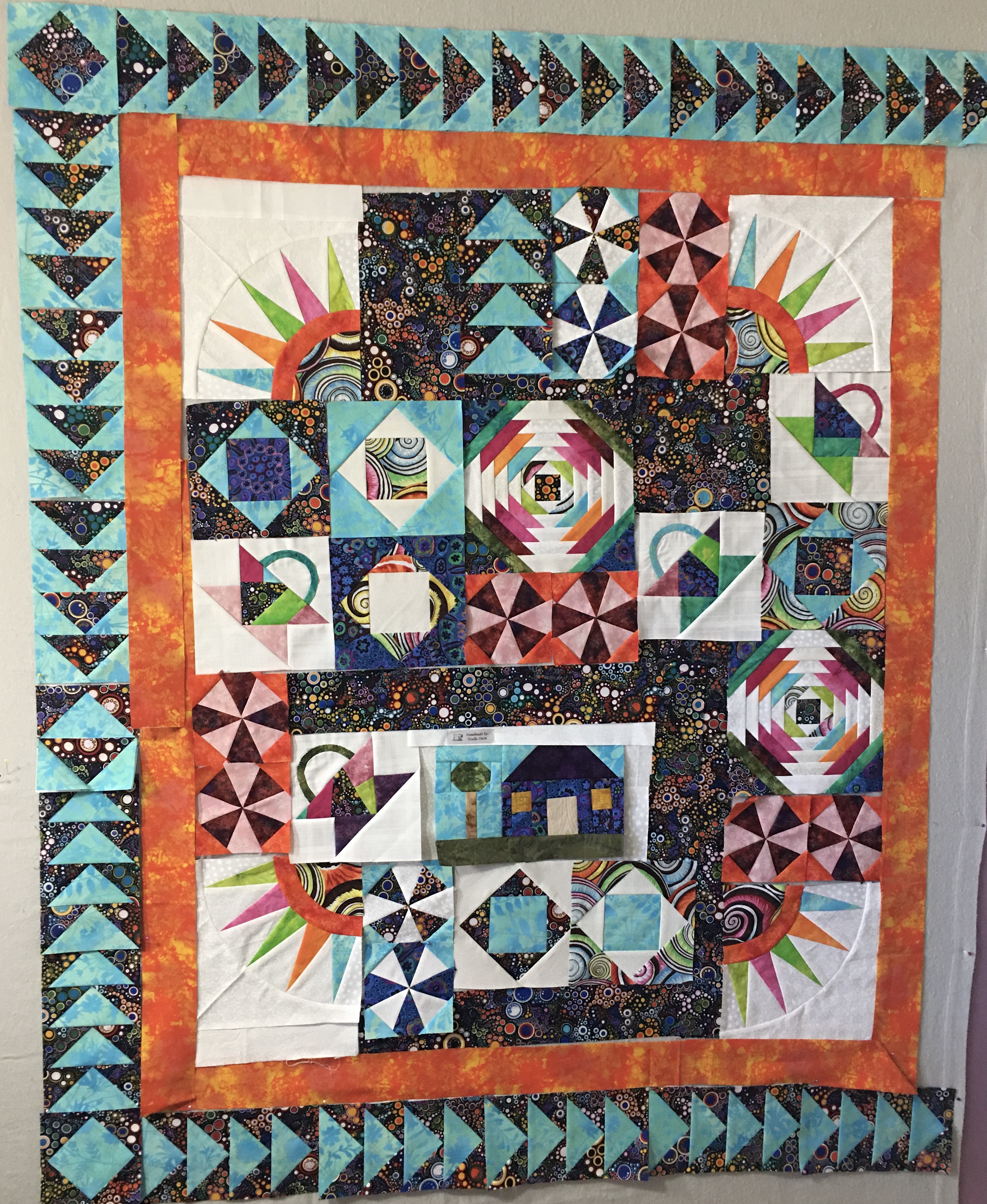 At first, I was very unhappy with the blocks because of the fabrics in the kit. I wasn't going to make the flying geese border, but now that I've sewn the blocks together, it doesn't look so awful, so I'll do the border and quilt it instead of adding it to my box of UFOs. Thank you, Alex, for pushing me out of my comfort zone!