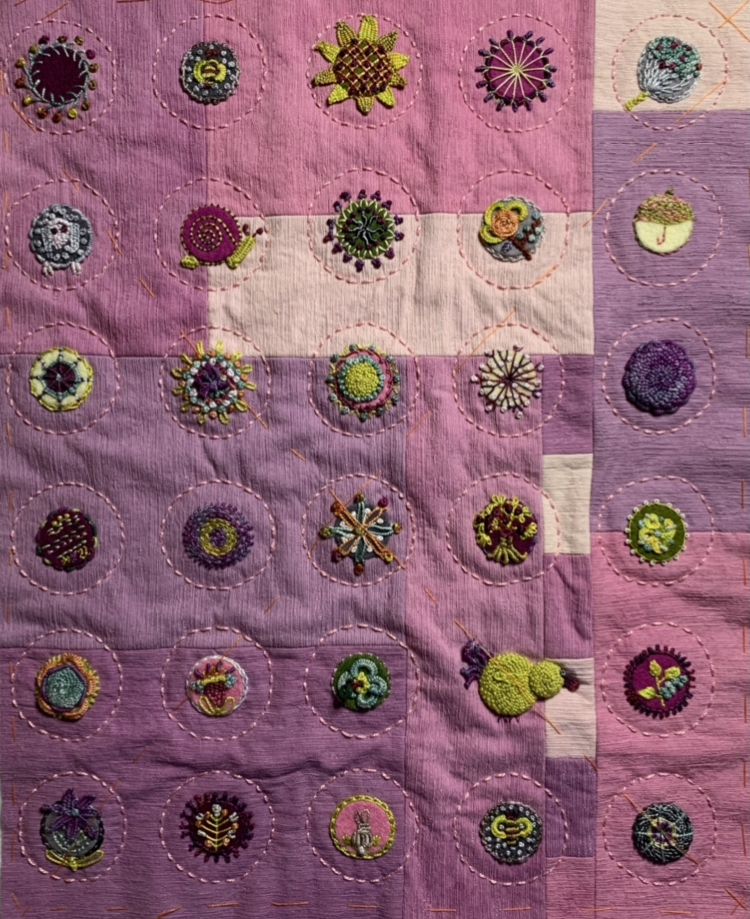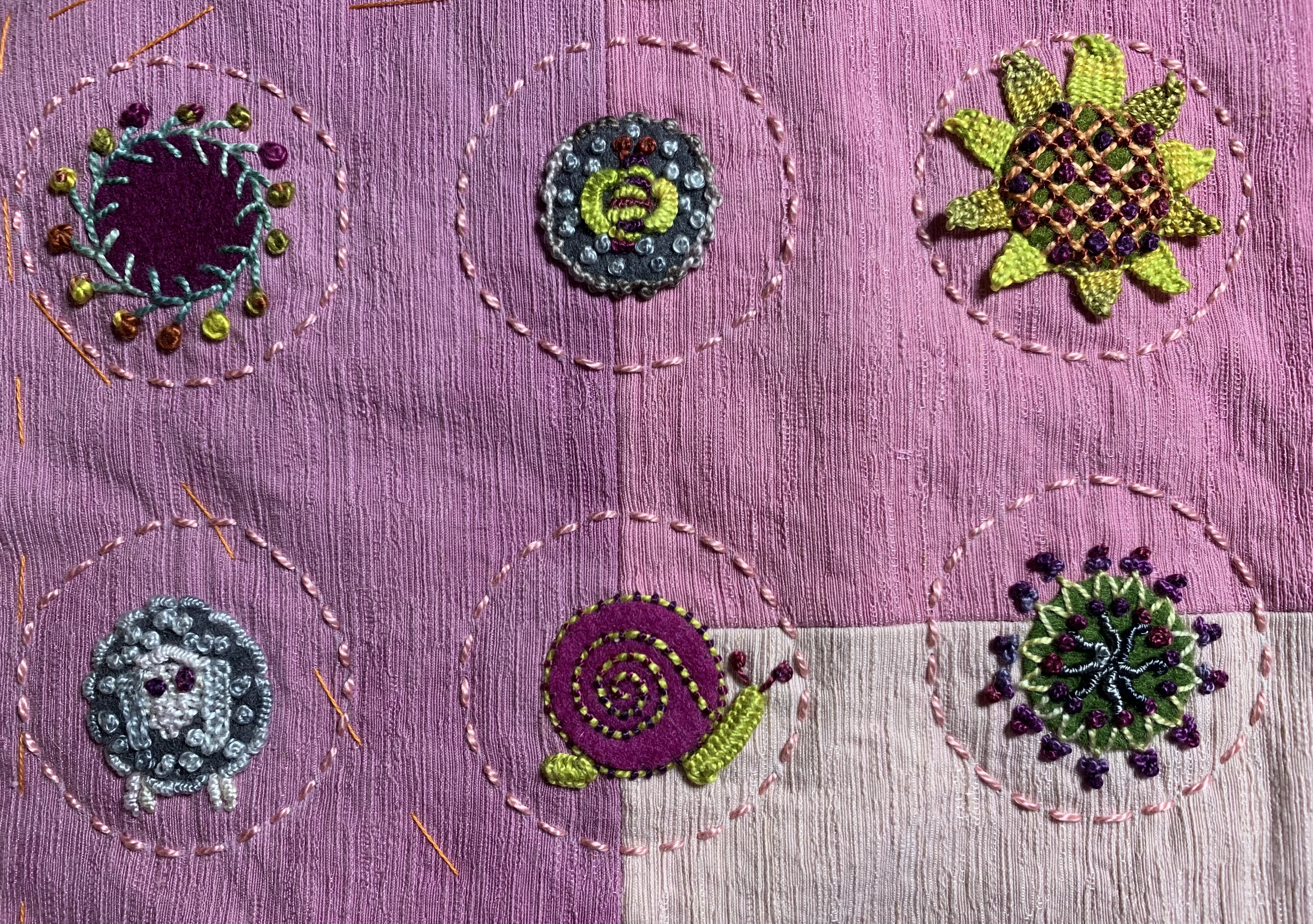 I started taking embroidery classes last July and had completed four lessons when we went into lockdown for four months. Thank you Alex for starting this project. It has given me inspiration to continue to practice what I had previously learnt and also learn some new stitches. I am loving it.