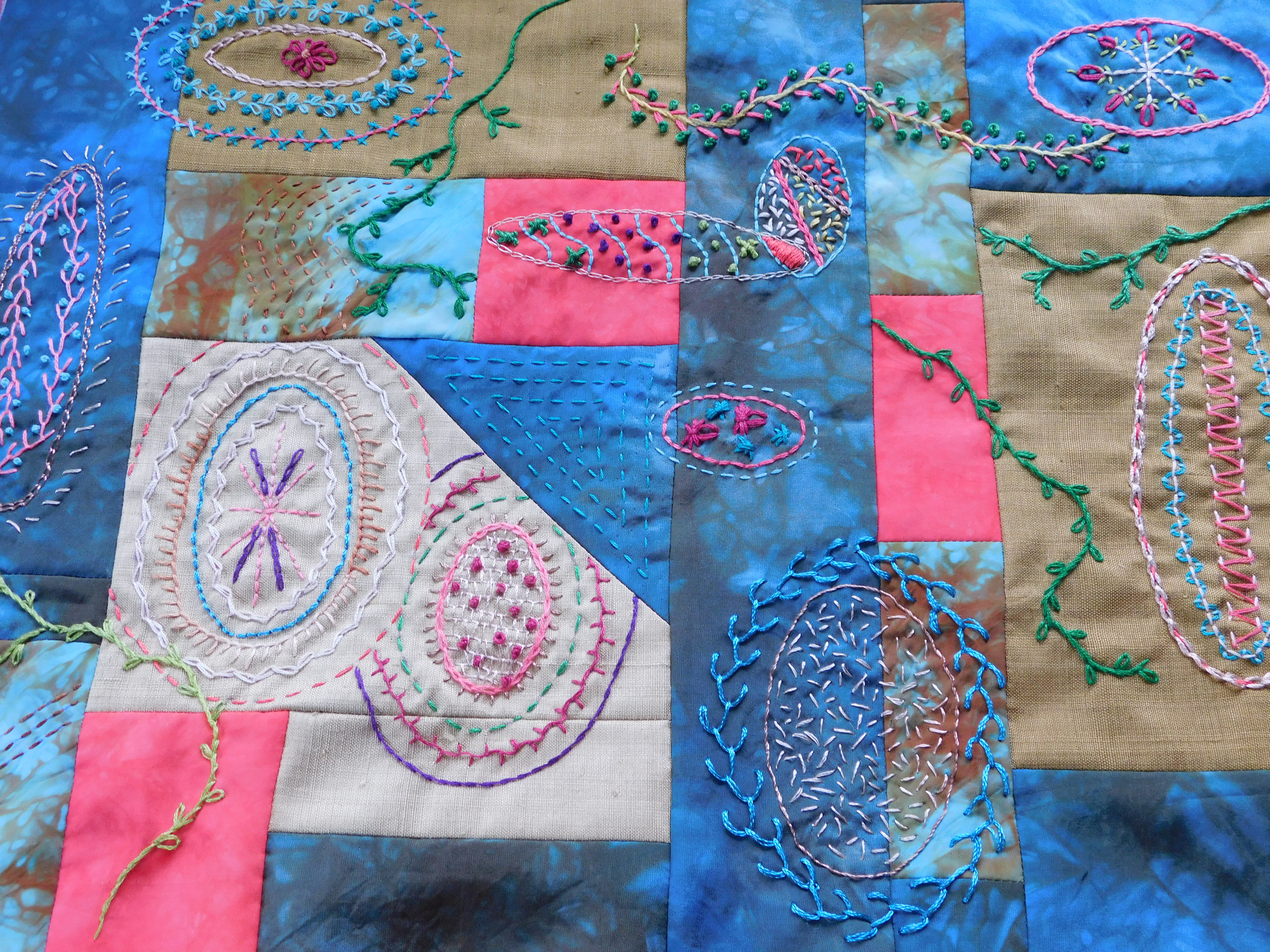 Penny, You have a real eye for stitches and thread colors that look great together. So interesting to look at with the zoom. Beautifully done. Love the fabric too. What thread did you use? HelenW