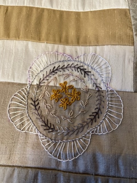 half circles around a larger circle. Can't wait to see how that turns out. You have a real talent for this type of stitching.