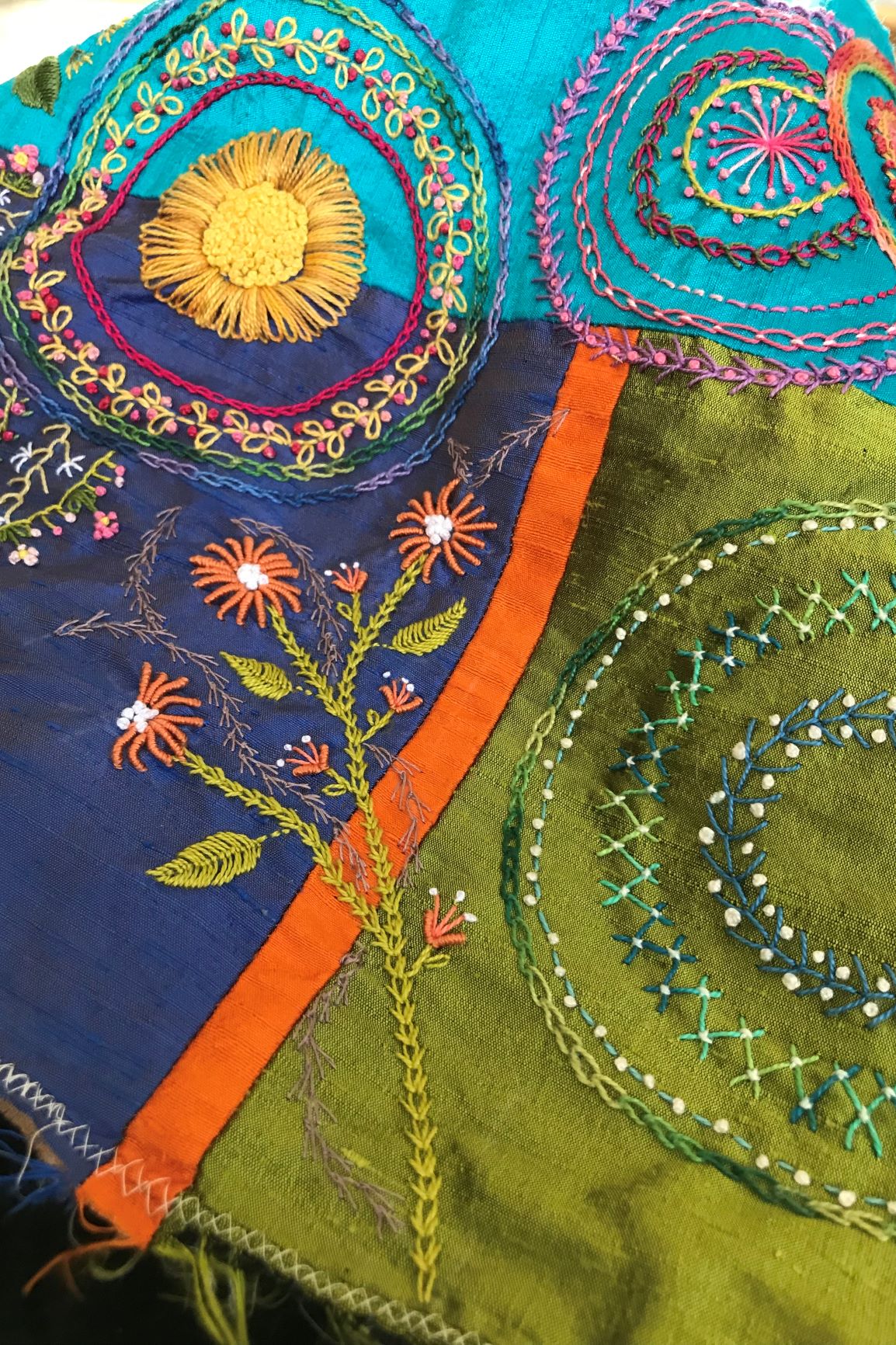 Hi Alex, I went into my silk stash and found this old crazy quilt block so decided to use it instead of making a new one for embroidery class.