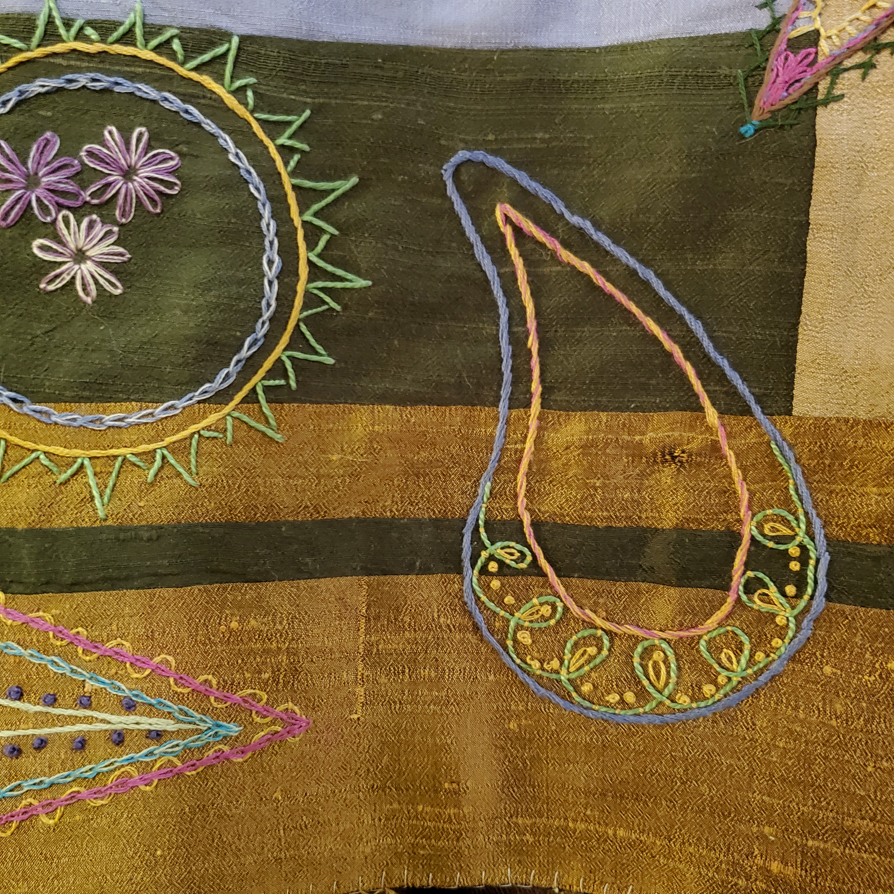 hexagon shape really adds some interest. Love the thread color selection and the stitch combos you used. Absolutely fabulous.