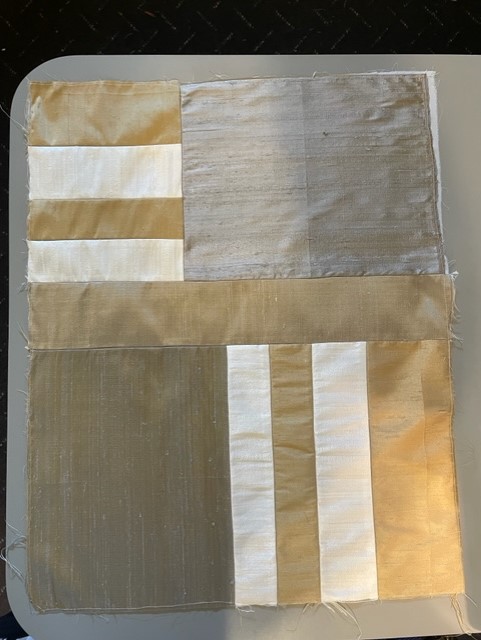 Got out my Dupioni silk stash and went to work. It just happened as I worked along. This is what I came up with for my background piece. Plan to put some Brazilian embroidery work on it. Examples of my Brazilian embroidery are shown.Last edited by Irene A.; 12-08-2021, 02:27 PM.
