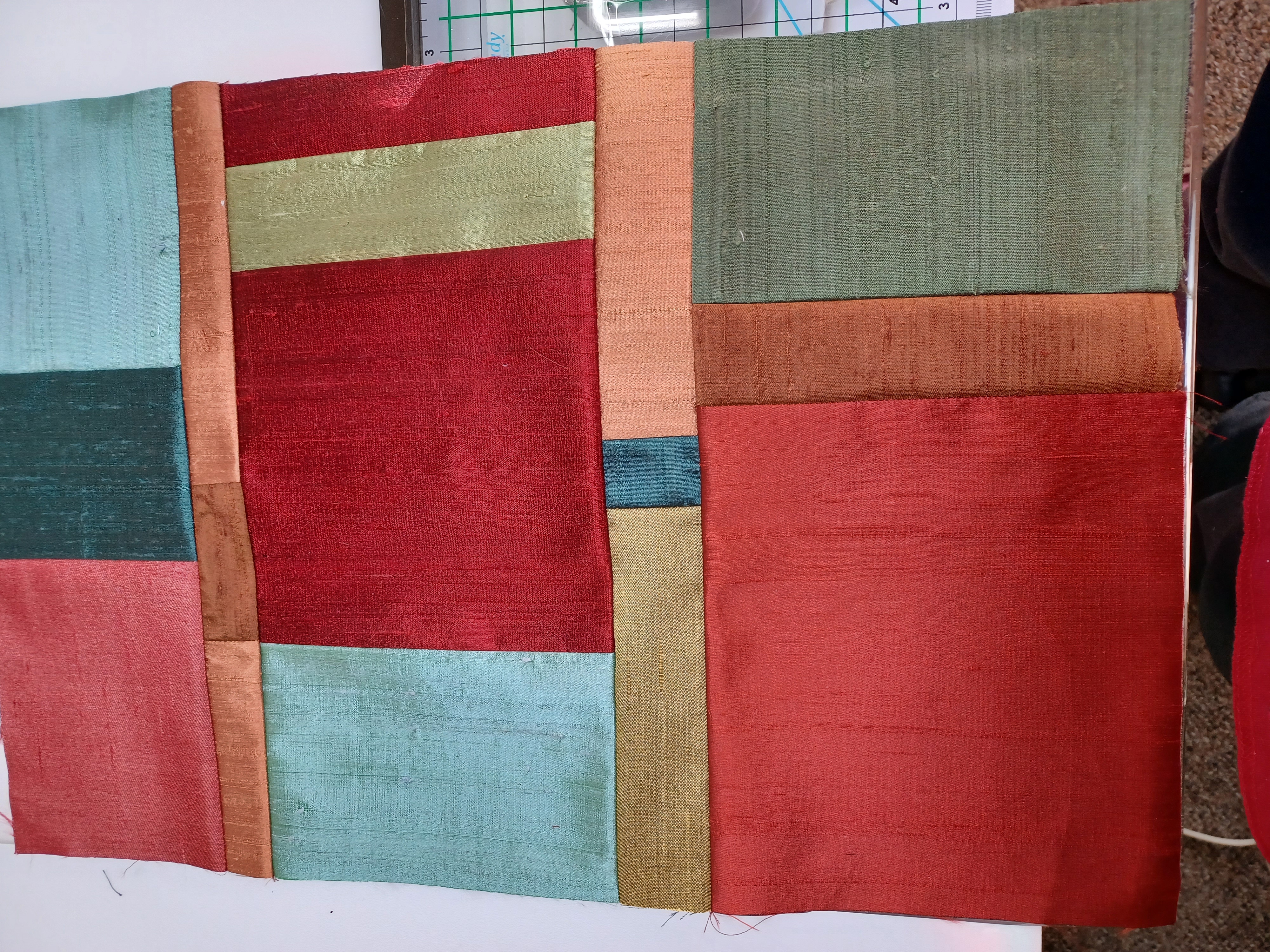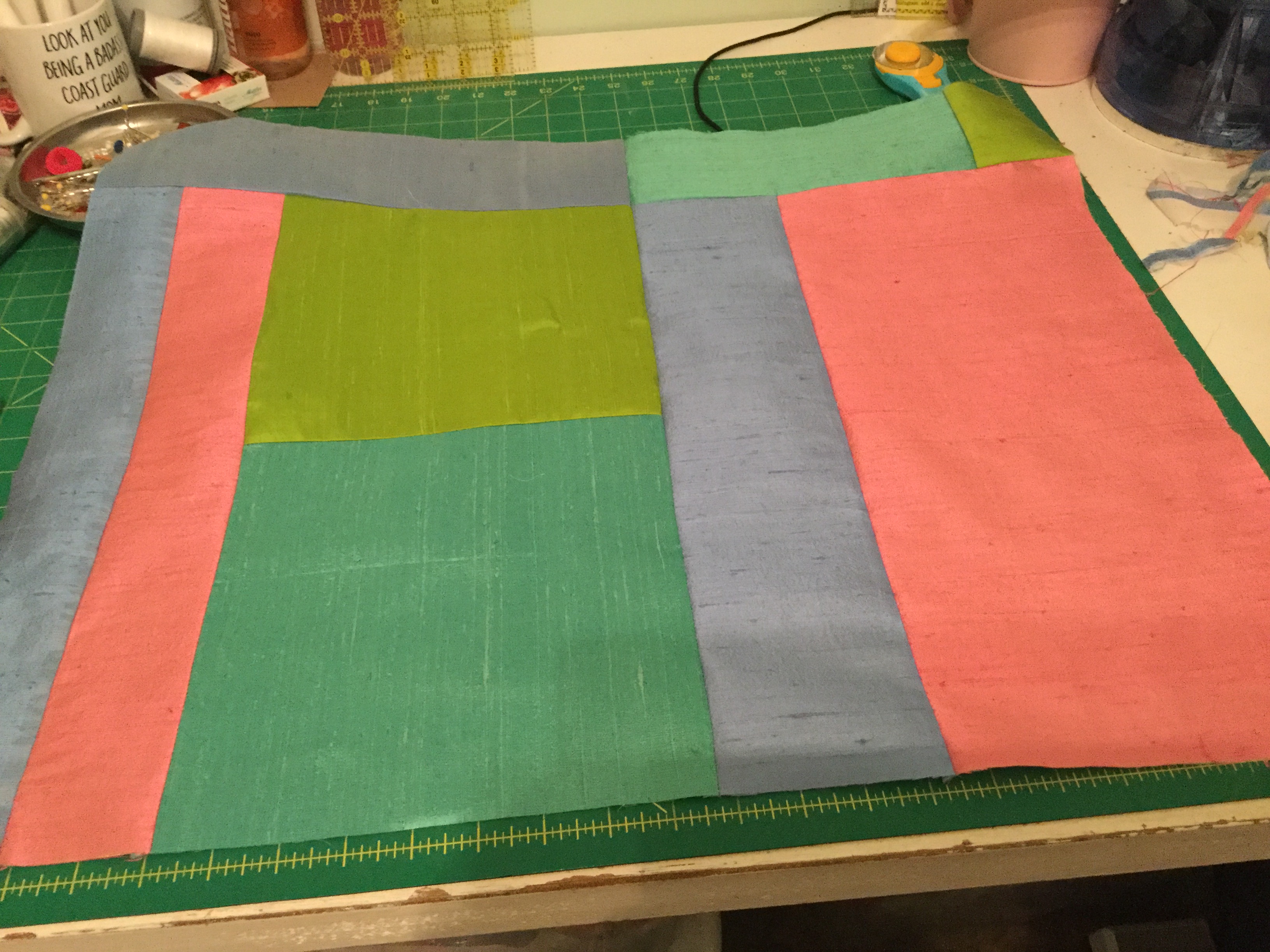 I received the only fat eighths that were left but I love the colors. Excited to be working with this group again. I agree that the fabric is hard to work with and sometimes the iron doesn't seem to be hot enough to fuse the backing. I wil give it another try today. Have fun and don't stress, right???
