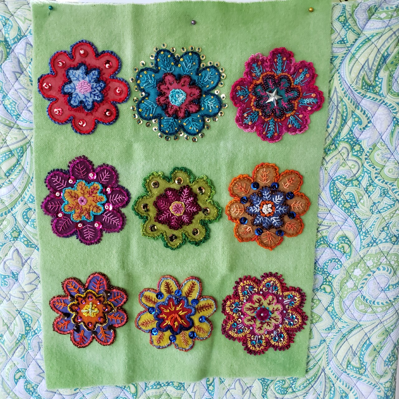 Rhopler, What beautiful embroidery. Love how good the stitches look together, and the use of sequins and beads. Have you lookedOriginally posted by rhopler View PostI am sharing the results of a 2-day class that I took 5-6 years ago with Sue Spargo. All of the flowers are wool on wool. The pattern and materials were provided by Sue. I loved working with the wool, so soft and easy to needle and I learned new stitches I had not done before.