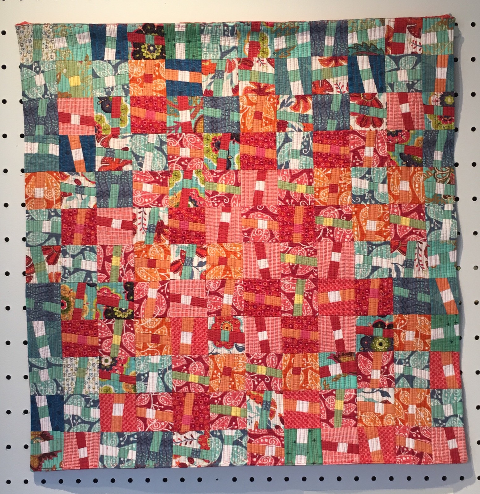 Dancing Chopsticks 25x25, pieced by Lesley Morris. Alex, I made this at the beginning of the Pandemic when you started your Lives. I used your fabric line, Mirage that I received in a Quilty Box along with your Chopstick Block. I Loved it, made it. It's been in two quilt shows on Kauai. This photo was taken in the gallery with it's pegboard wall. Dancing Chopsticks now hangs in my home. Looking forward to your Improve Class. Big Aloha for all you do for all of us! Lesley MorrisLast edited by Lesley M.; 09-04-2022, 11:36 PM.Tags: None