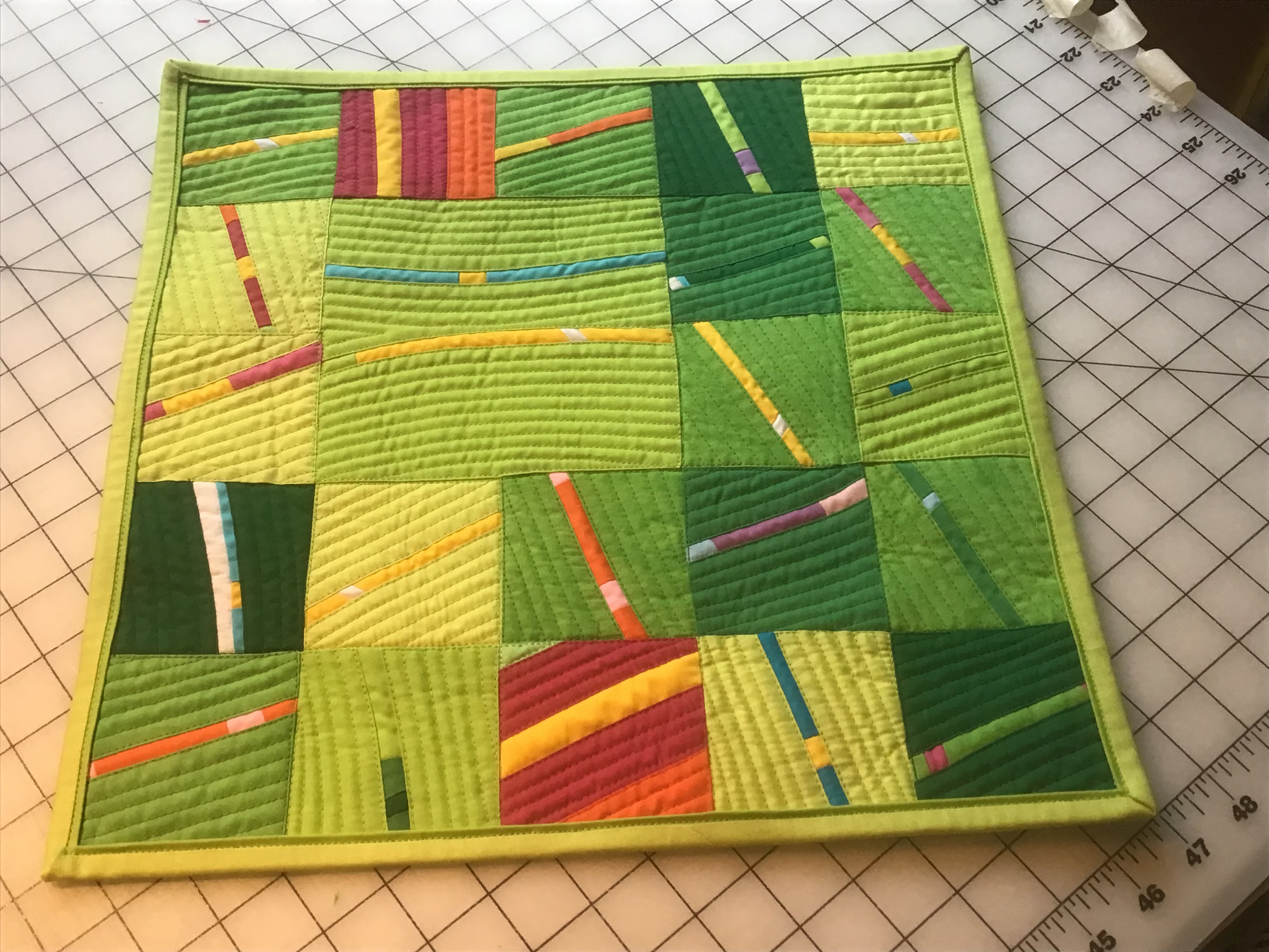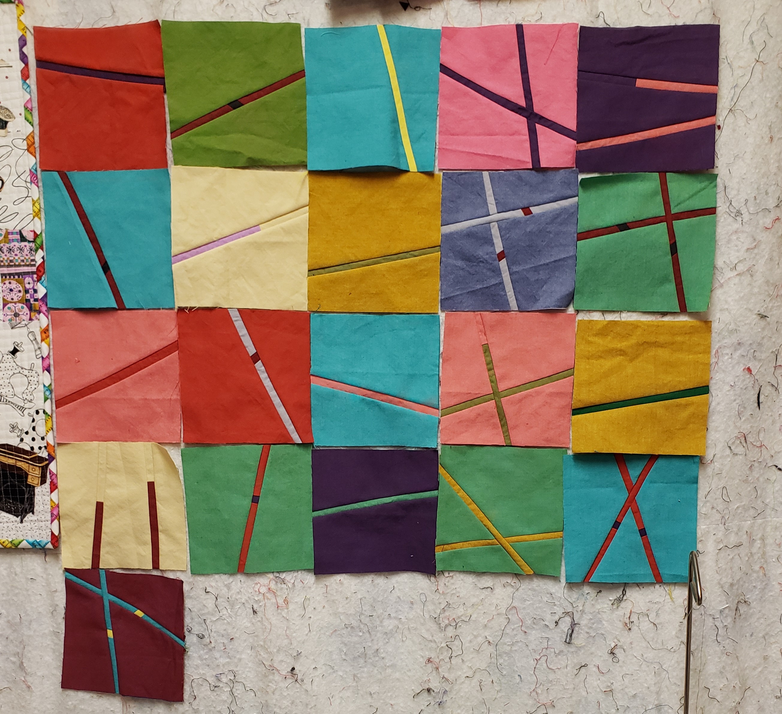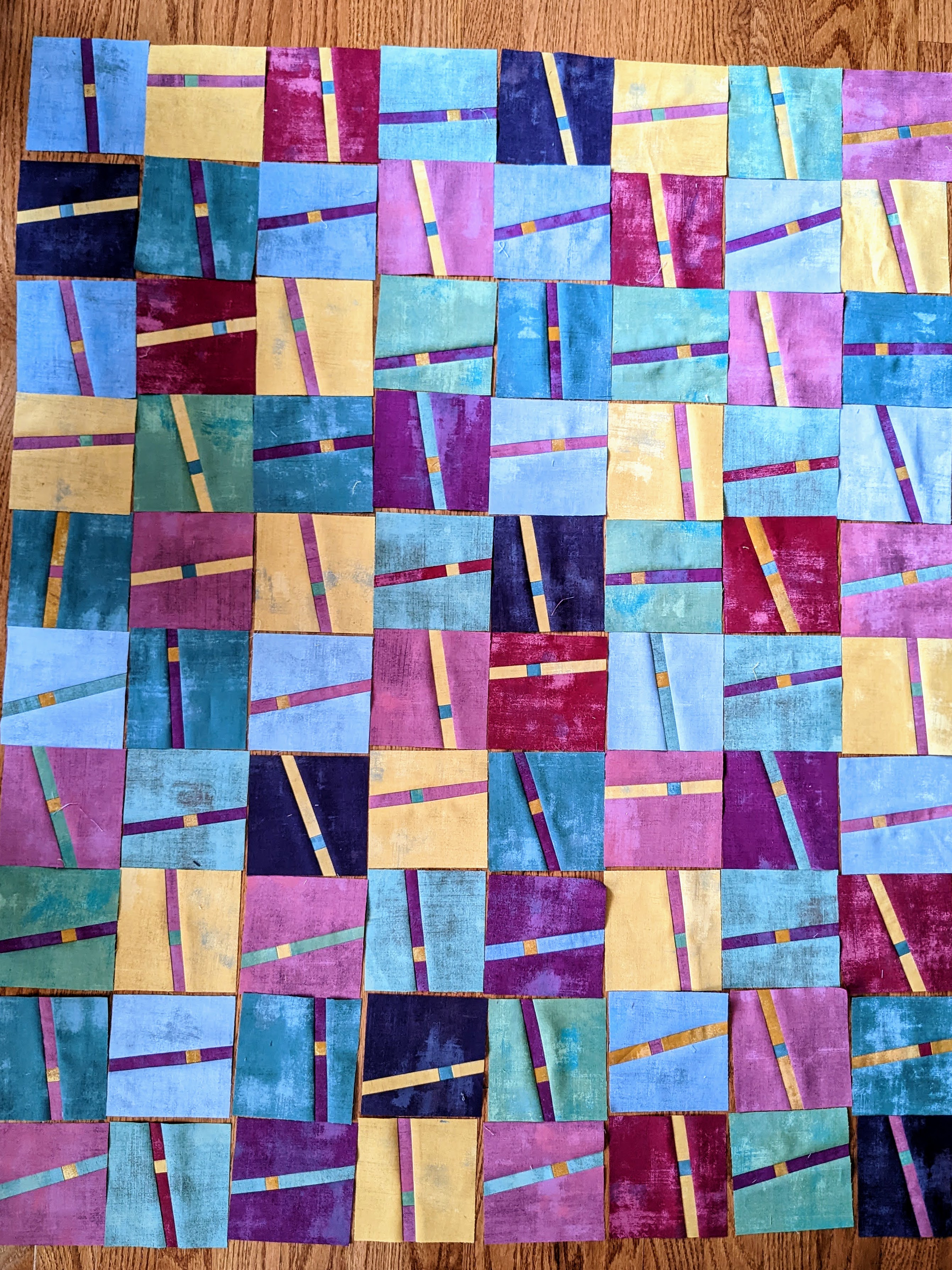 Alex, I have been a viewer and member since the pandemic started. Currently, I am watching your Improv on FB and enjoying it very much. Started with a couple of match stick blocks and couldn't stop! I think 80, 4.5 inch blocks, unfinished, is a good place to start piecing as a top. I am using Moda Grunge fabrics. I love sewing with Grunge. I also use it for embroidery backgrounds. I am still working on the embroidery with the circles, which is also a pieced Grunge background. Thank you for your great FB lives, shows, books, and products!
