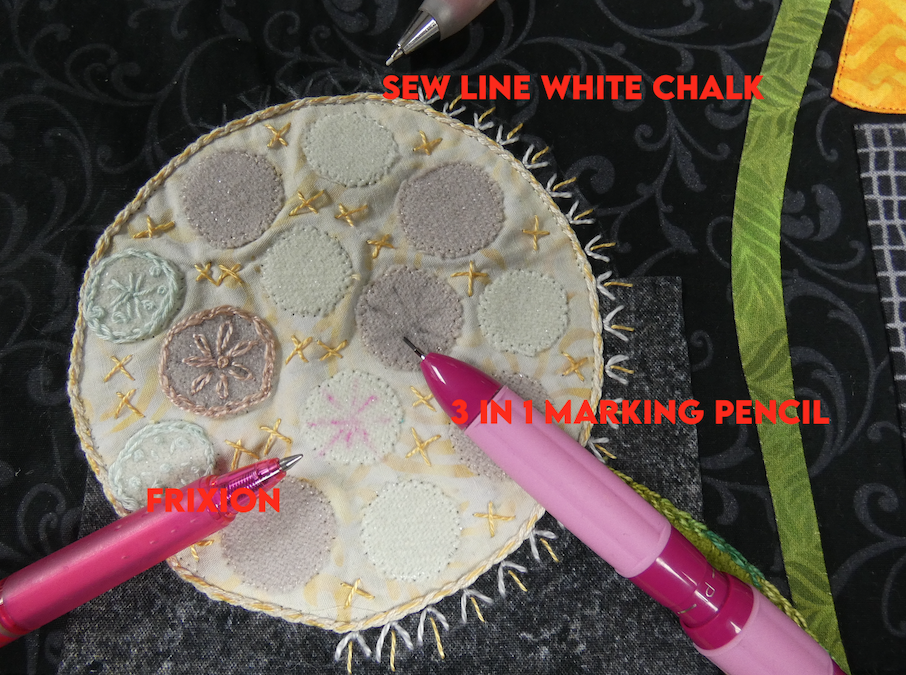 I use it a lot. I also use Frixion and SewLine white chalk. I sometime use purple air erase, if I plan to get it stitched in one