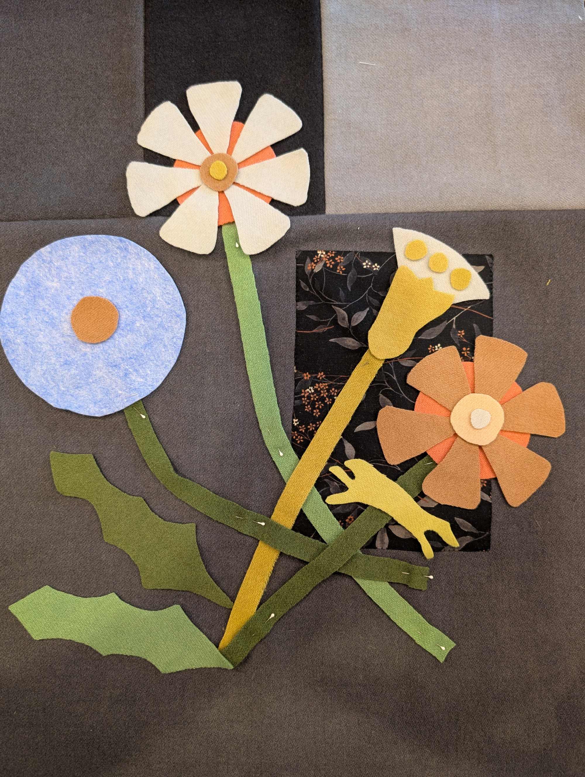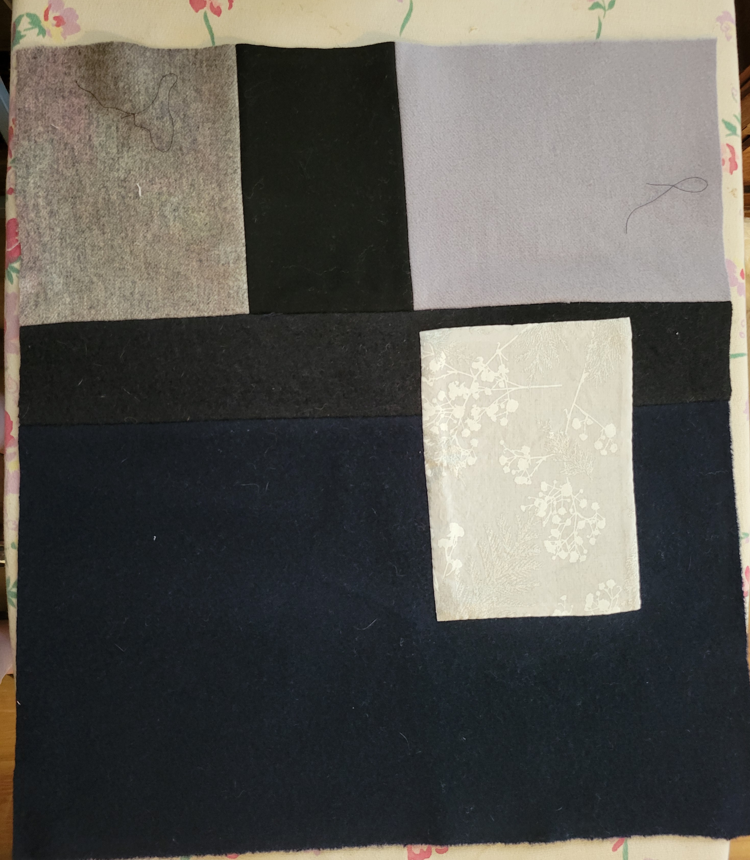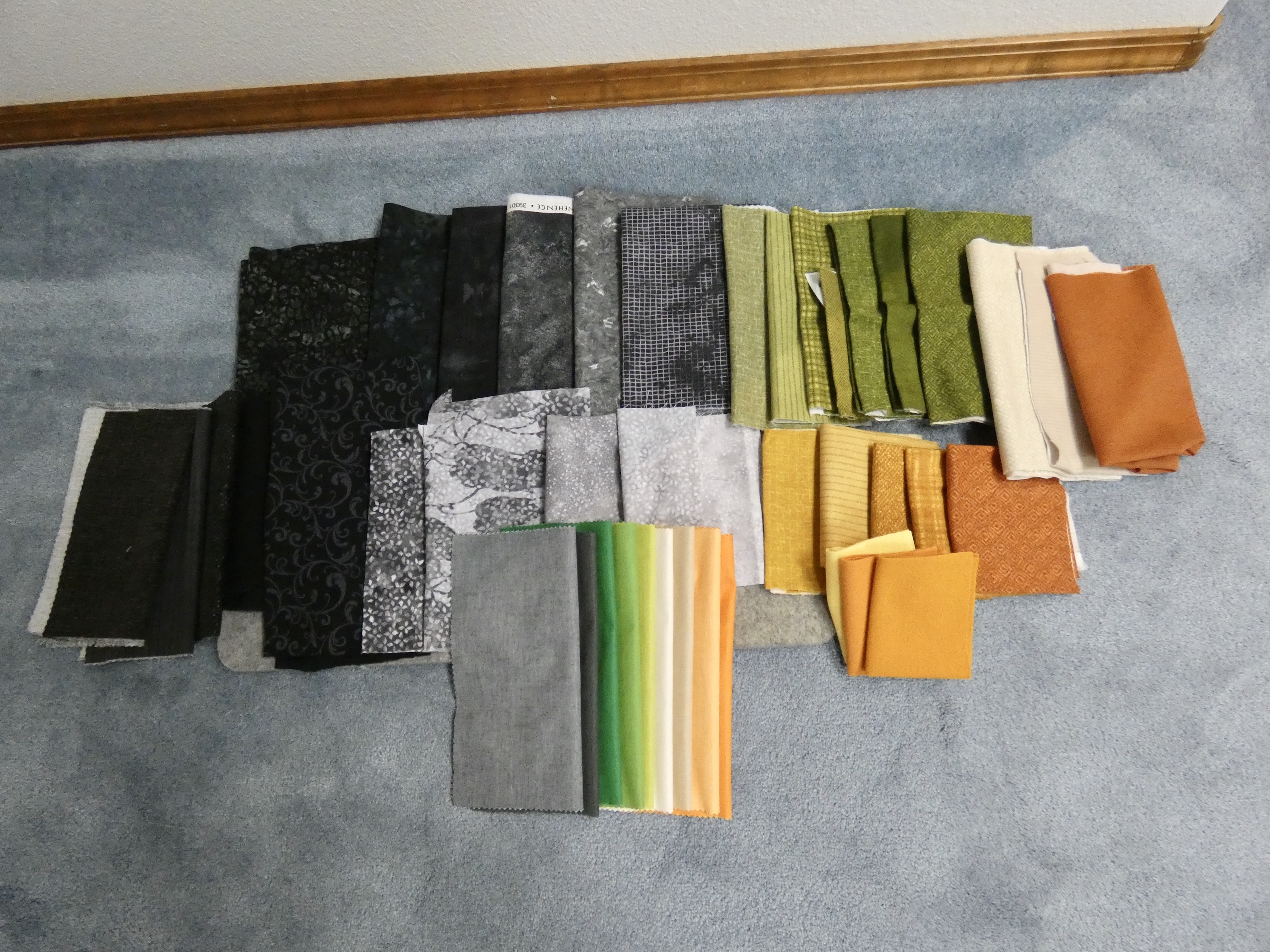 of wool that I will use as accents. Next fabric thing to do is audition lay outs for the background. This should be a