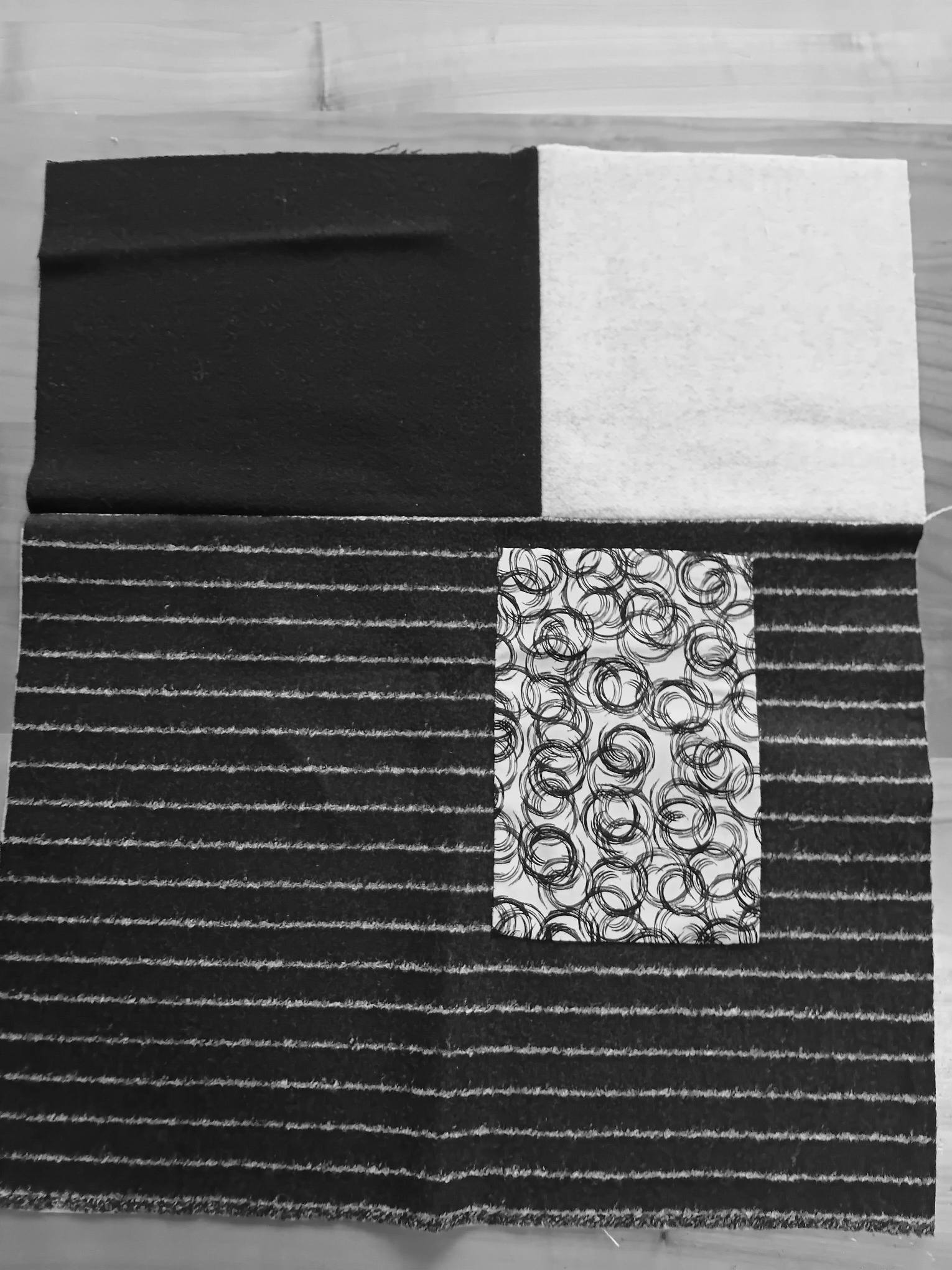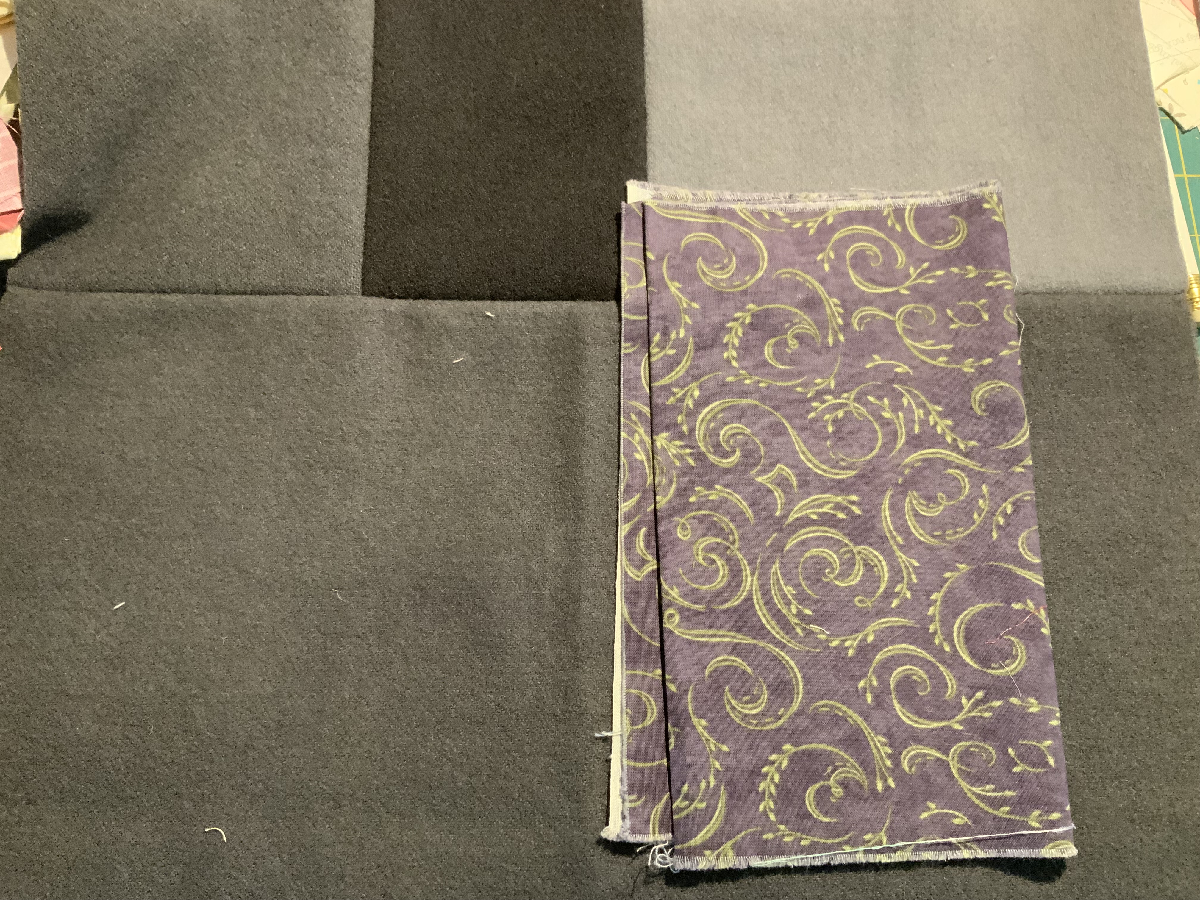 Auditioning background fabrics...I cut some rectangles and square of various sizes that would stitch together