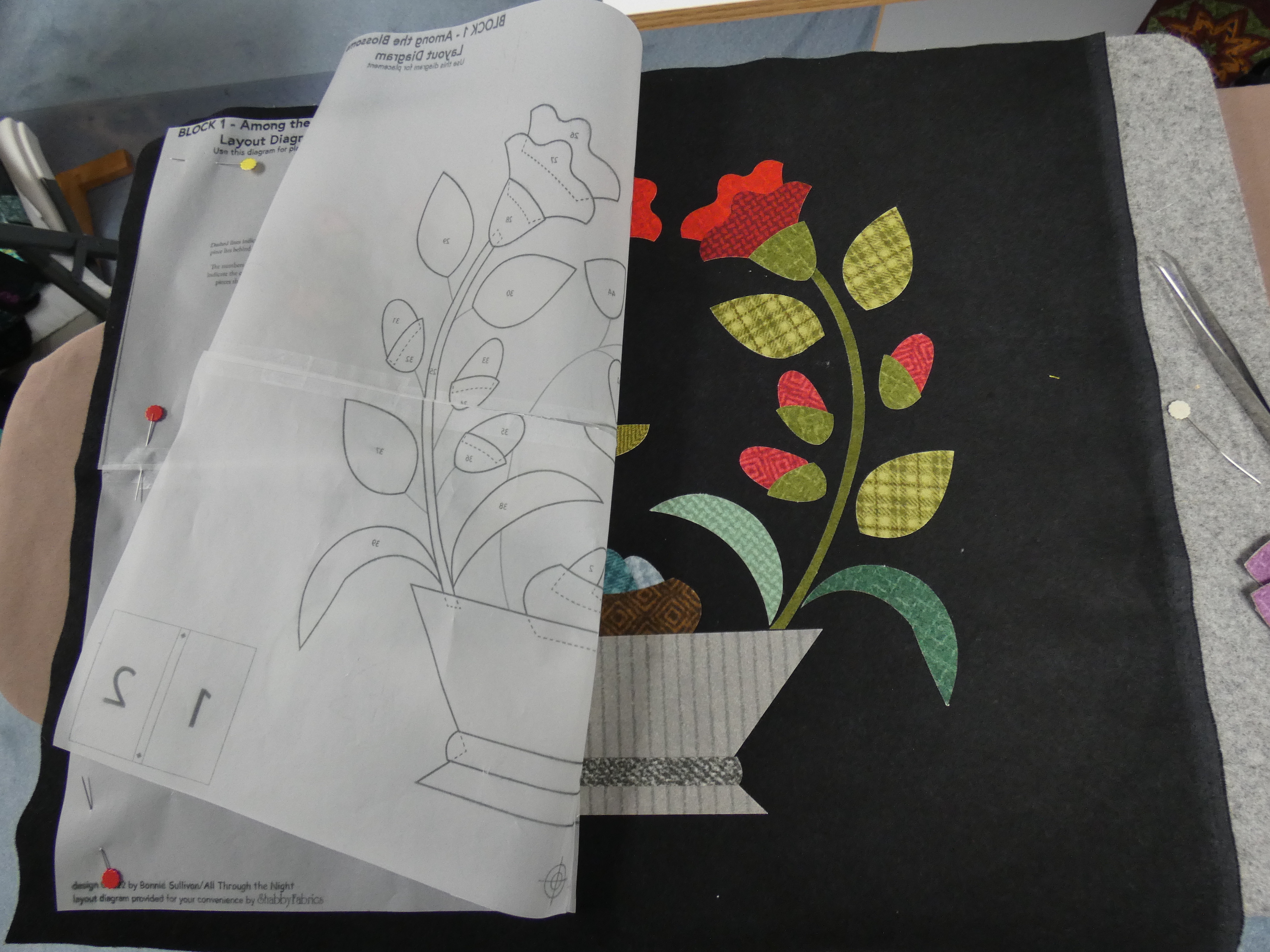 doing the stitching. If you don't have the tiny applique pins to hold your stuff in place you might