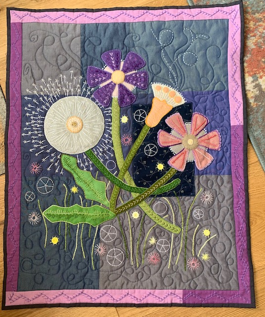 Just seeing your post from last month. I’ve included a photo of my full quilt (click photo to see the whole thing). It hung in its first show at the end of July at the Maine Quilts show. I was thrilled to receive 1st in the appliqué category and even more thrilled to get Viewers Choice! Second time for that honor at the Maine show.