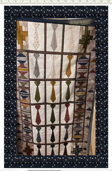 Hello I’m working on this quilt for my dad it’s a story quilt the Alex Anderson lantern’s represent or lunch in Seattle at a dim sum rest etc I have a dark blue border should I narrow it and add a dark brown border also or is the blue on then what color binding… thank you all kindly I’m a novice and borders and color selection is my least favoriteDana J -