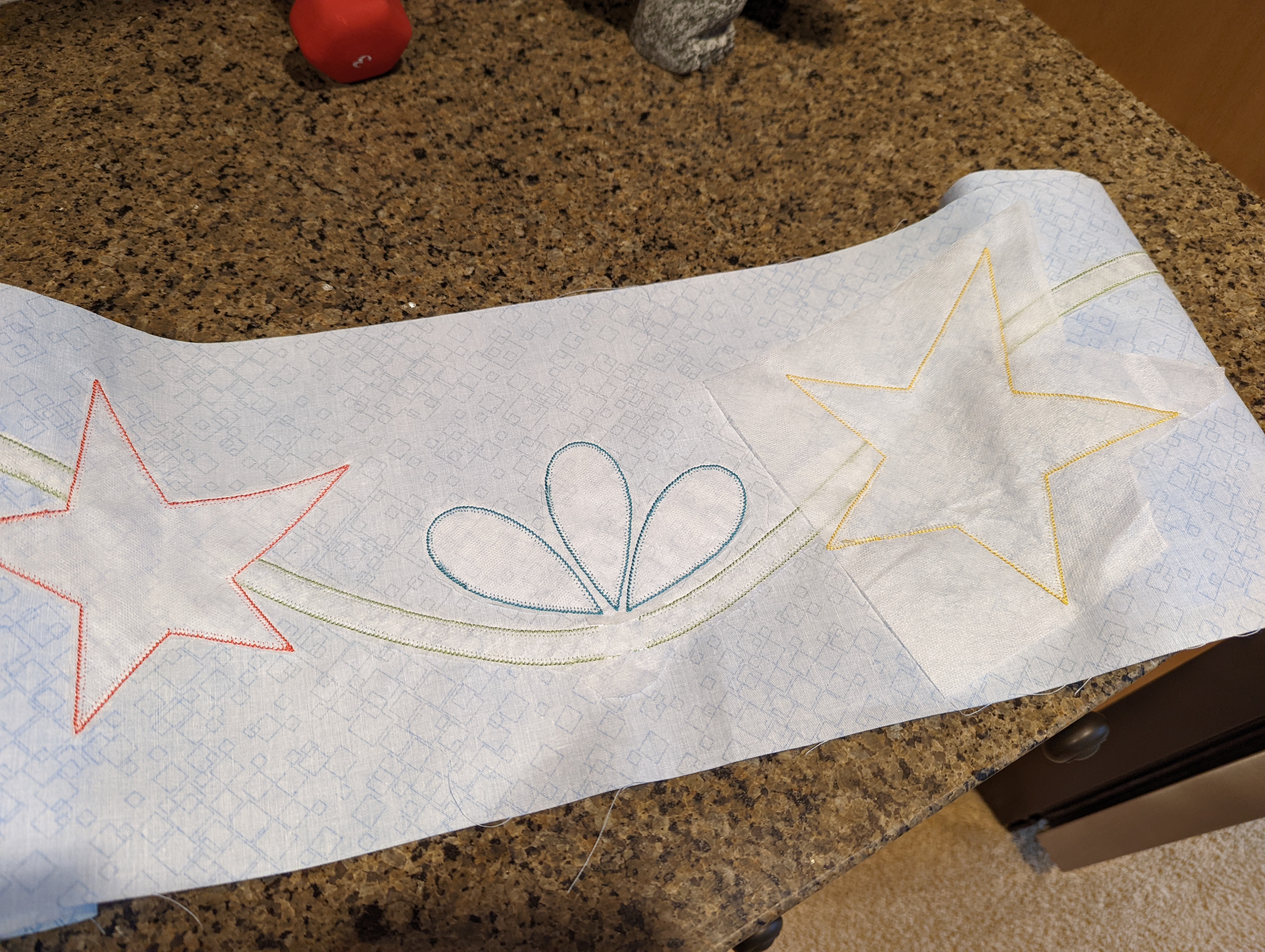 I have not used it, but the Pellon website PDF for it says to trim excess and then wash in any temperature water and it willOriginally posted by buescherbari View PostShould I trim away excess Wash n Gone from the inside and outside edges of the double blanket stitching on larger applique patches?
