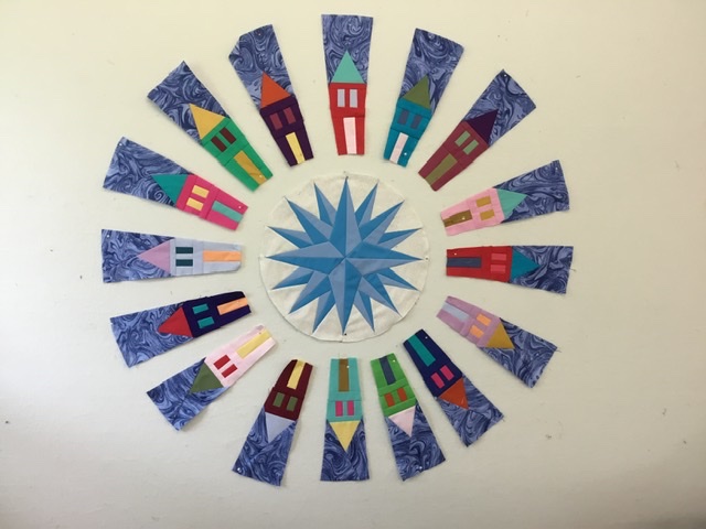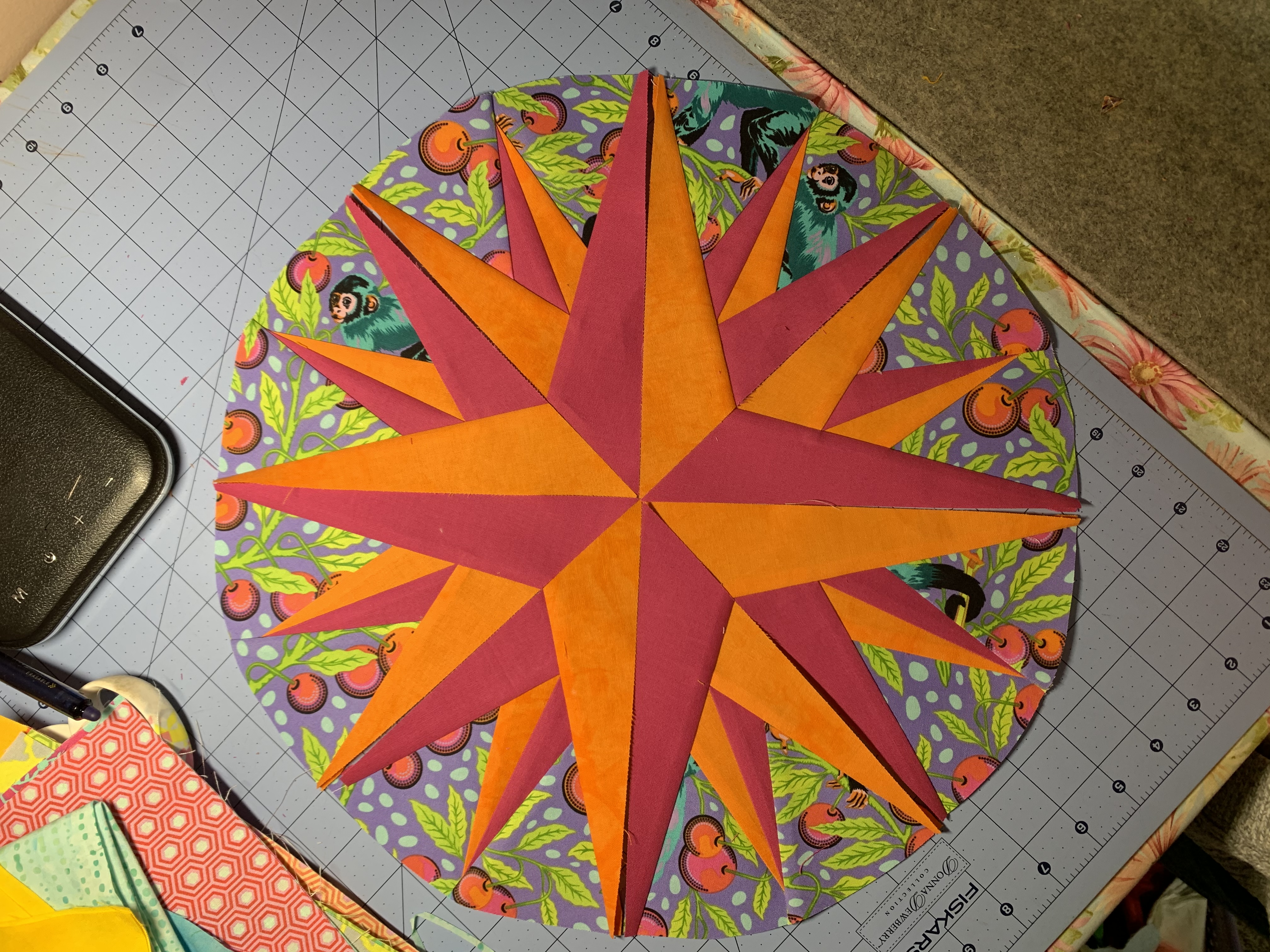 Here are my two Mariners Compass. I’m making 2 quilts because I had so much fun making the houses and I couldn’t decide on my fabric choices lol. The first one is all batik fabrics and the second version is all Tula pink along with my own hand dyed fabrics.