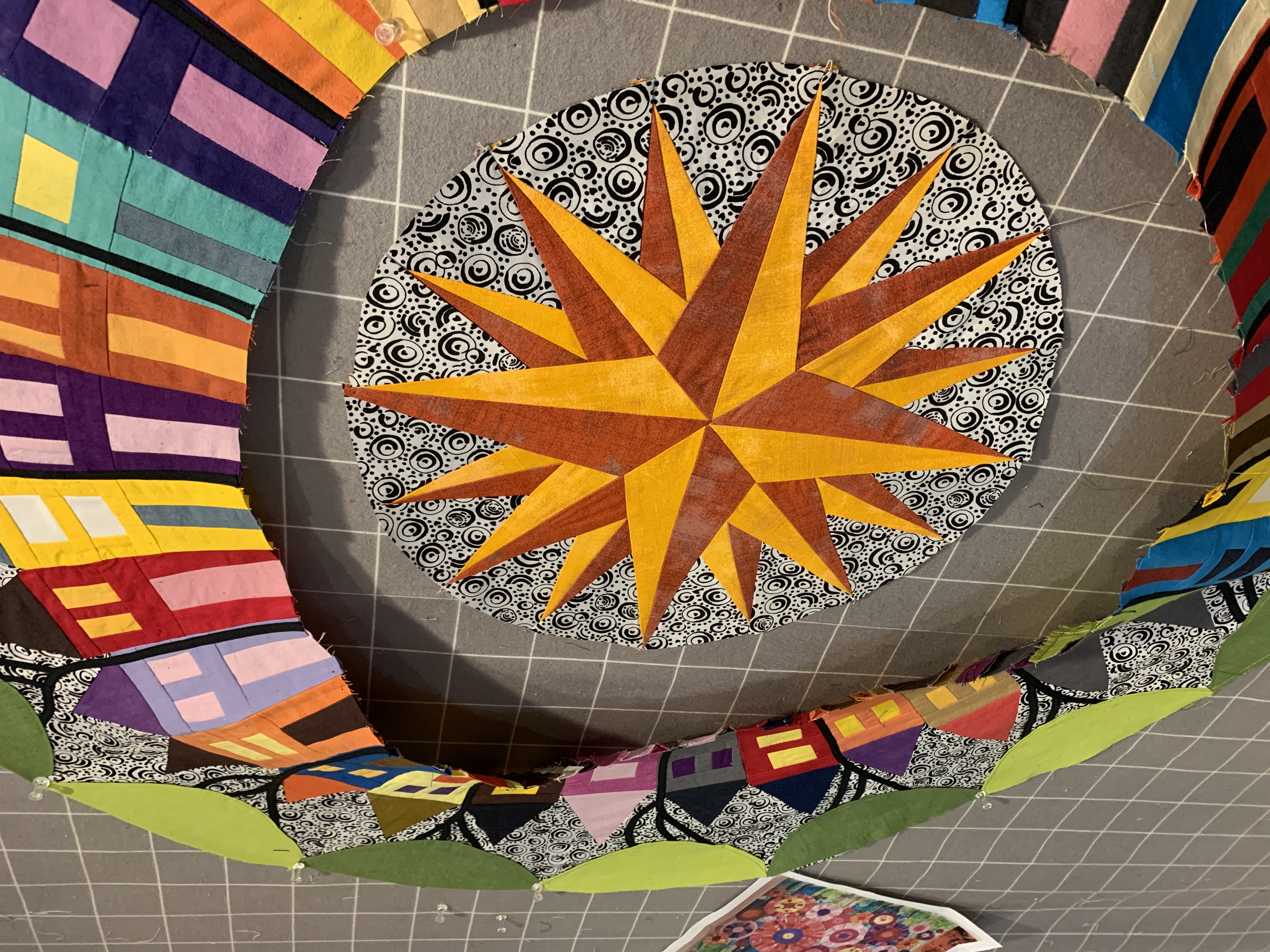 THE INNER ROAD IS 2" WIDE SO THE CENTER OF THE QUILT, COMPASS AND INNER ROAD, WILL BE 18" FINISHED.