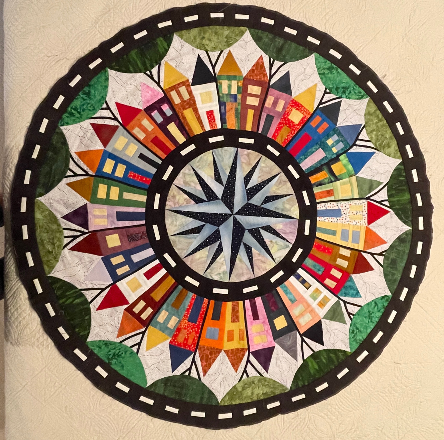 Originally posted by 1951bernice View PostThanks Helen for the help with my question. I took the houses off from the inner road and split them into quarters and checked if they were 90 degrees. That was a very good tip, a circle can't lie flat if it is not 360 degrees!!!!! No they weren't , they needed a bit of adjusting in the seams, etc and I got them each to be 90 , joined them and the house circle was nice and flat. All of my measurements were exact as Barbara posted, 18.5" for compass and inner road units, the hole in the house circle was 17.5" . So I sewed the two units together, the houses to the inner road and still had a problem. The houses lie flat but now the compass is not flat. I am usually good at math, but my question is why is the inner road/compass 1" larger than the hole of the houses?? Shouldn't it only be 1/2 " difference (1/4 " sewn from each part) I think I will adjust the size of the inner road and hand applique it on. Unless you have another solution for me, and I am sure you do.