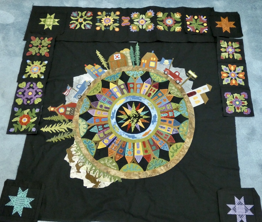 Auditioning ideas for the border. My Color My World is 60 percent size and made mostly of flannel. HelenWHelenW