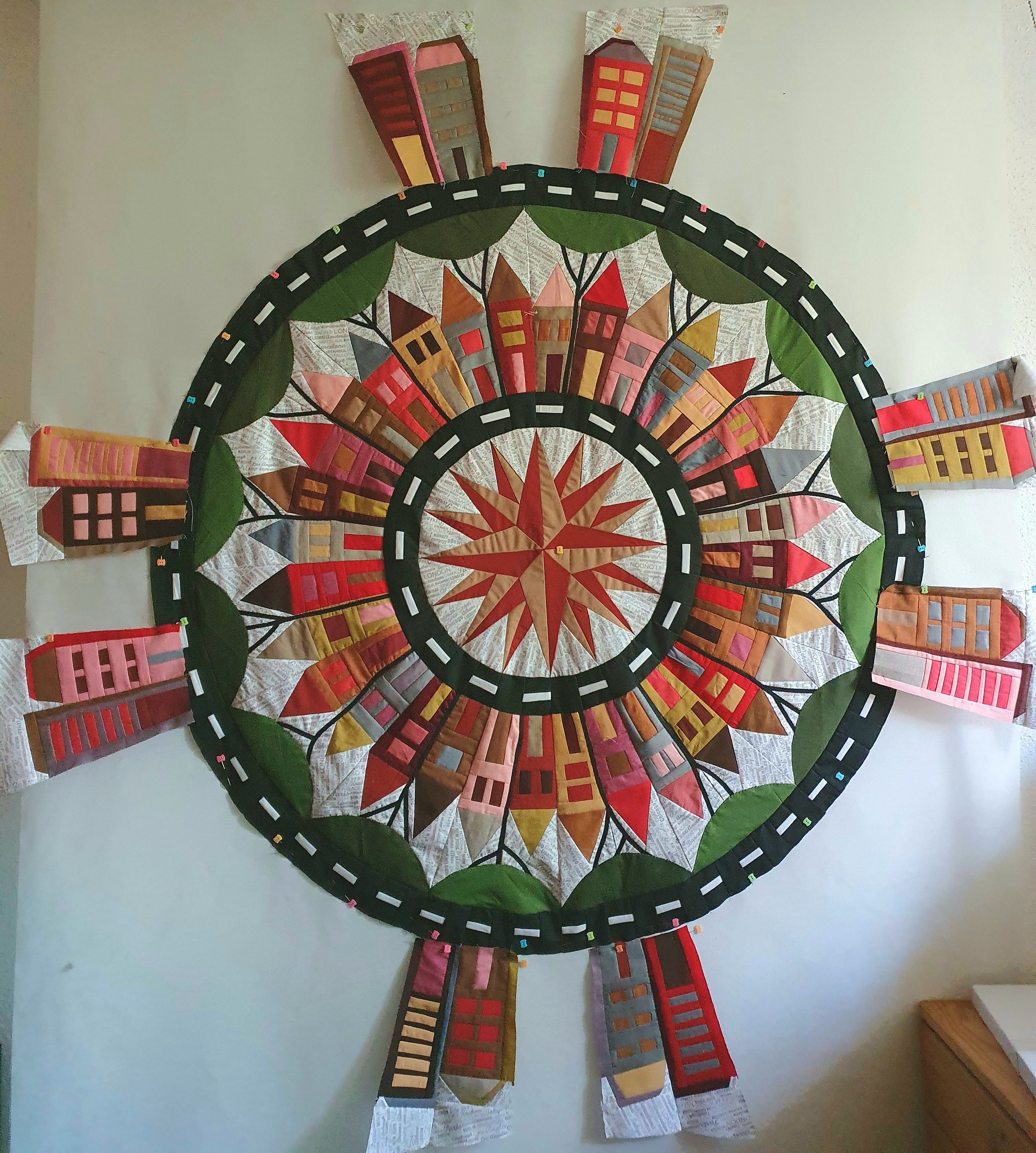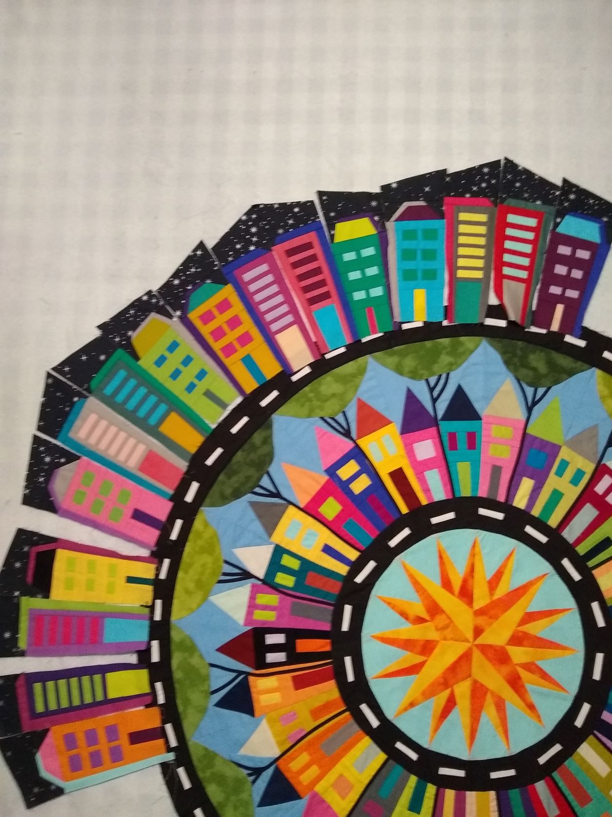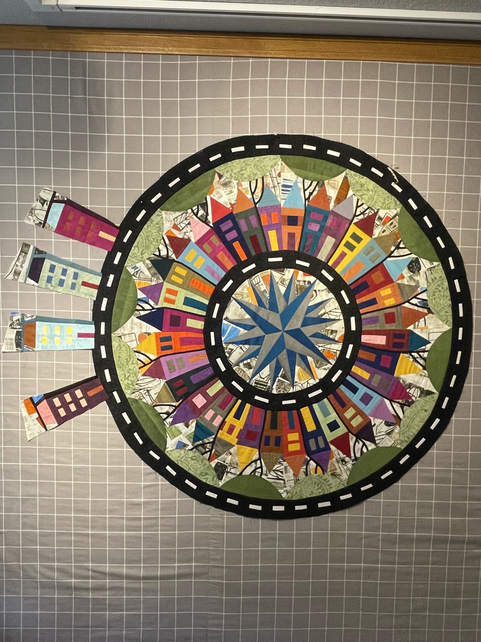 Originally posted by quilter150 View PostYour hand embroidered trees are great. Are the houses on the upper road your designs?