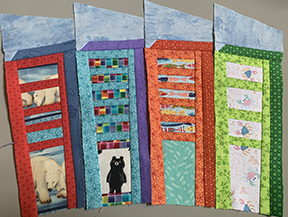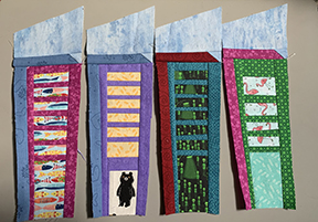 Finished June's Tall Buildings today. I so enjoyed having various critters peep out of the windows of my houses, that I decided to go full on Zootopia with the city. My grandson is partial to the Avengers building. I used scraps from some of the masks I've made him for school this year. I'm partial to the flamingos.