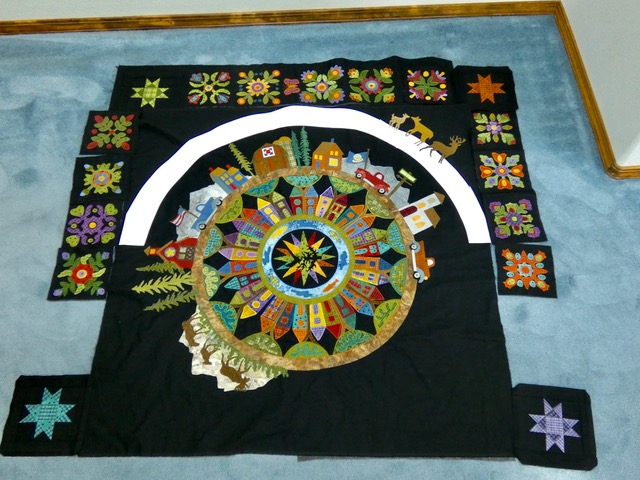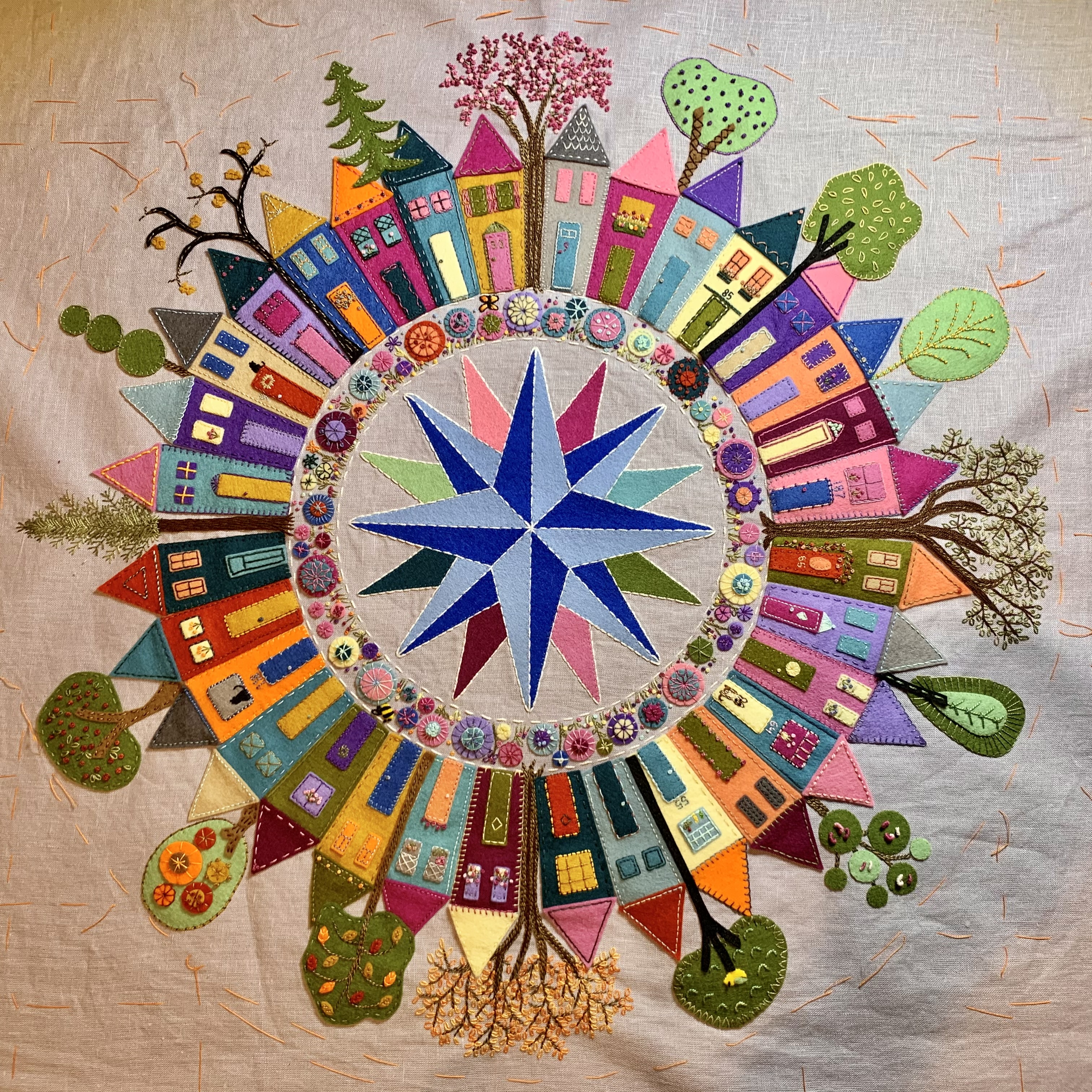 As Helen W. mentioned, I'm doing this as a wholecloth quilt using wool felt on linen. I have had someone on a Facebook group approach me and I've shared my patterns for the compass and small houses. These are at 65% of the original BOM pattern. If you are interested, message me through TQS with your email address and I'd be happy to share.
