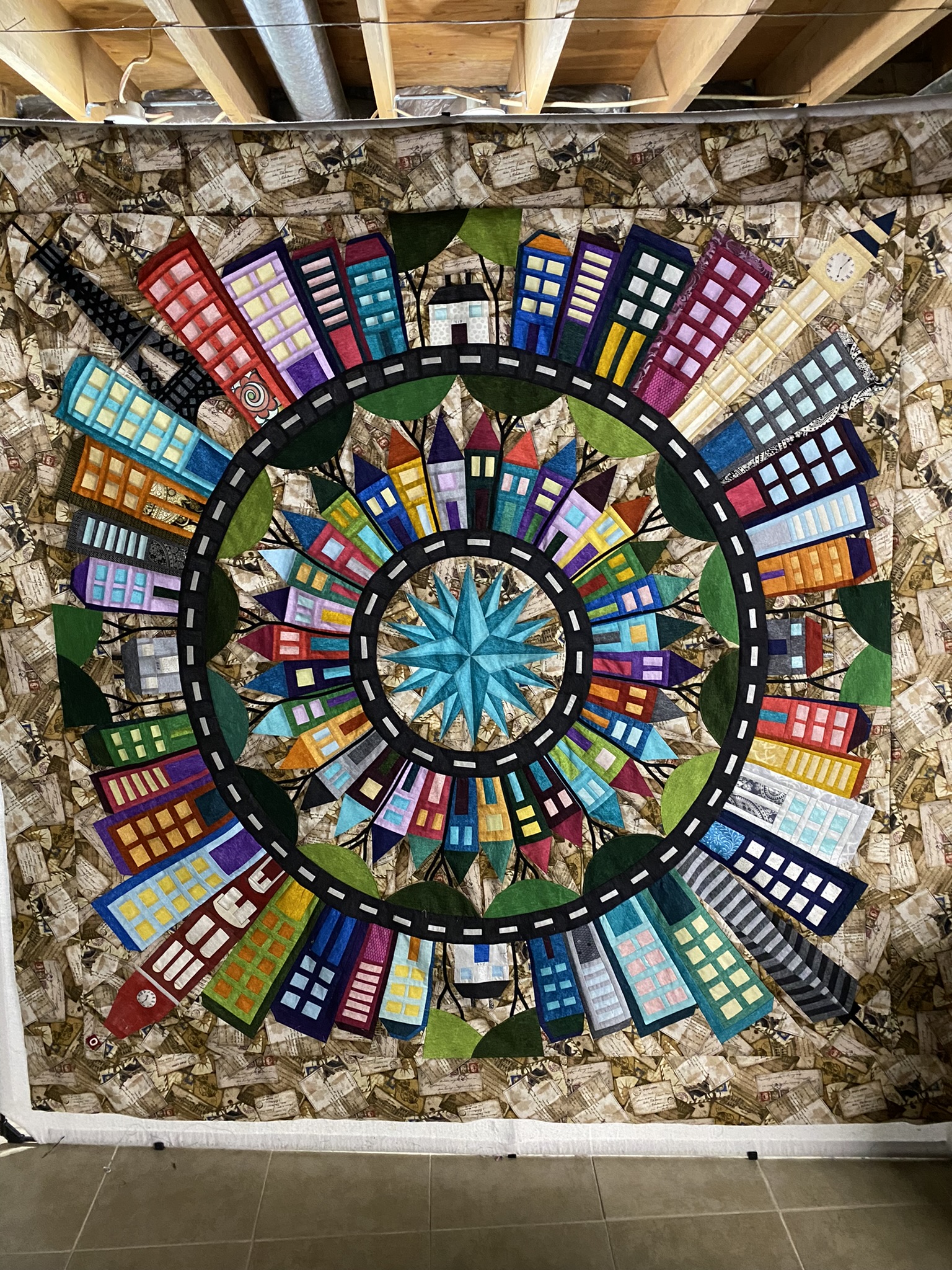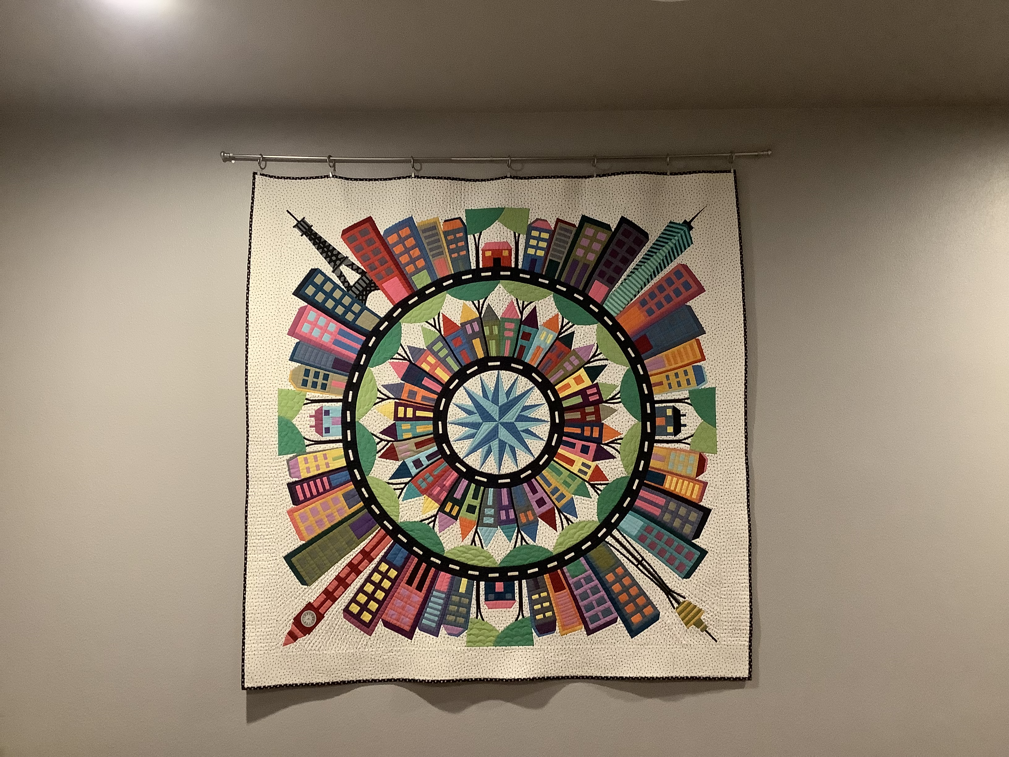 Your background works great with this quilt.Originally posted by grandmalarry View PostMy quilt top is itching to be quilted! Too late to buy the kit, used Amanda Murphy Cotton Shot Collection for the buildings and Ohio State University - University Hall instead of the Australia landmark. Thank you Barbara for all of your valuable hints and videos!