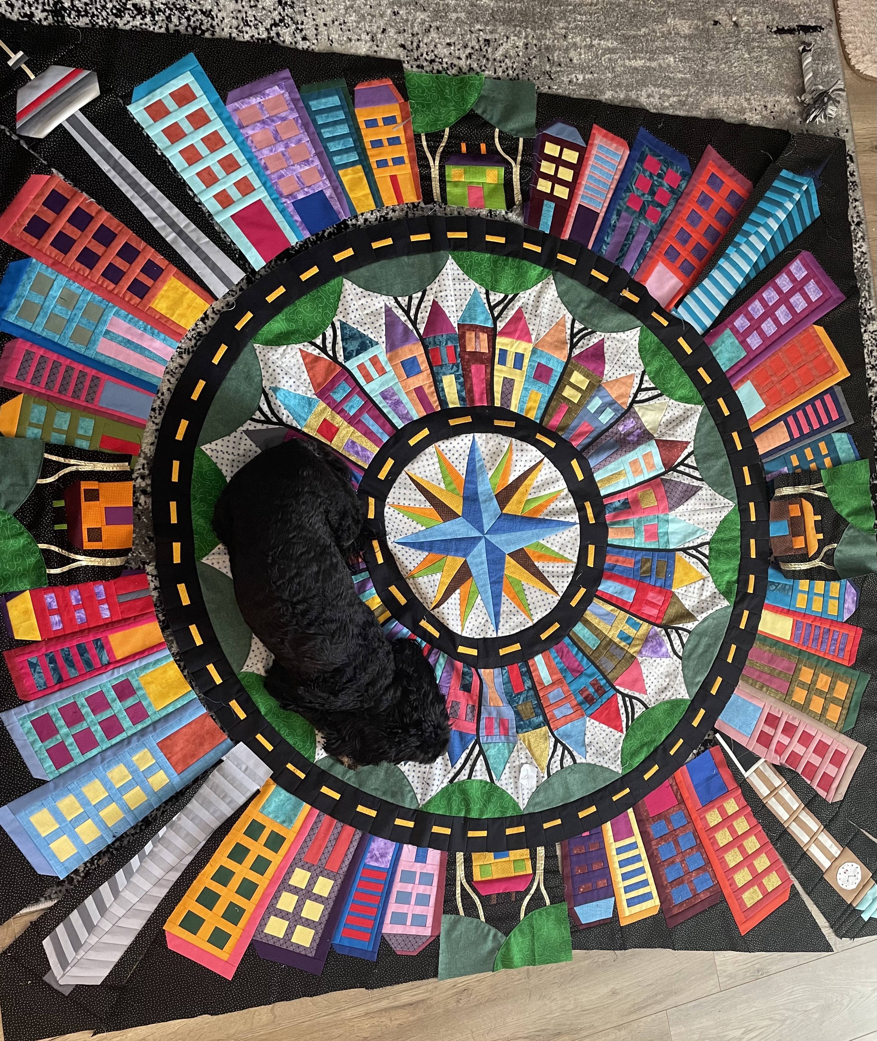 Great job! So glad you kept with it. Now you have a great quilt and new skills.Originally posted by christy View PostI have finished my quilt top. I love it. I used mostly Ricky Tims’ hand-dyes in this quilt. Of course not for the background, nor the roads. I used scraps that I had on hand but occasionally had to break into my precious “Ricky stash”. I am going to take my time deciding how I want to quilt it and probably won’t start the quilting until the new year. Thank you Barbara for all you have done to lead us thru the making of this quilt. I have been a star member since the beginning and this is the first “The Quilt Show” BOM that I have made. This one immediately spoke to me. I didn’t think I could do it when I first saw the quilt but because of Barbara’s encouragement I gave it a try. What a great journey it has been. I have really enjoyed the process and seeing the progress month to month. The photo doesn’t do it justice but it is the best I could do.