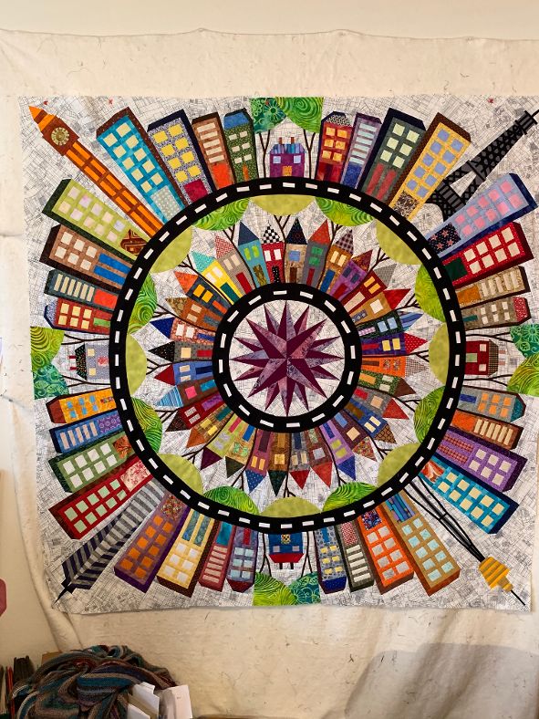 I am finished! I started in June, paper pieced the entire thing, and have a small clock face to glue to Big Ben after it is quilted. My husband will quilt it, probably after the first of the year. It was a FABULOUS project and I am proud to have completed it. Love Wendy Williams, and Barb, the videos were so helpful. Thank you Quilt Show!