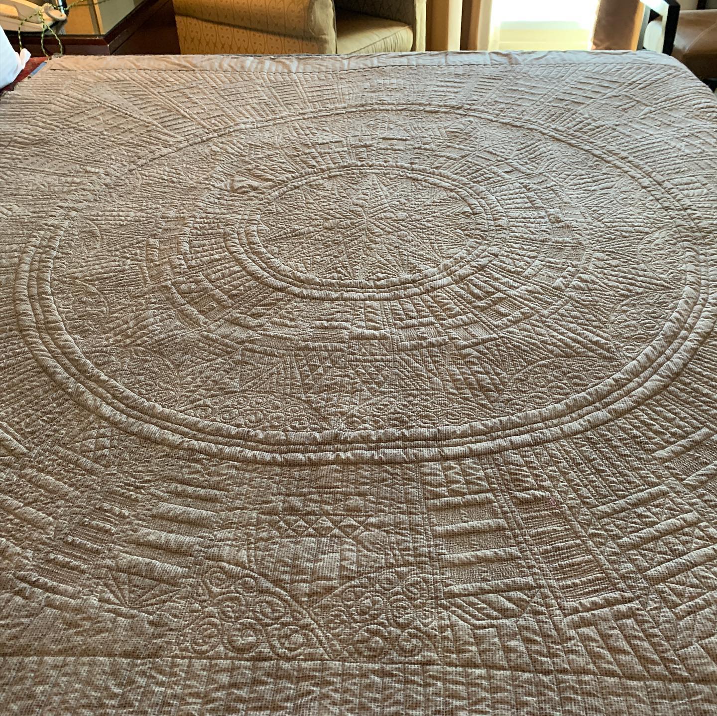 I’m a bit terrified to quilt it! Last night I stitched in the ditch around the mariner’s compass. It’s a start! I’ve never made anything like this and it’s for my daughter as a wall hanging. I would be devastated if I ruin it! Suggestions, please!
