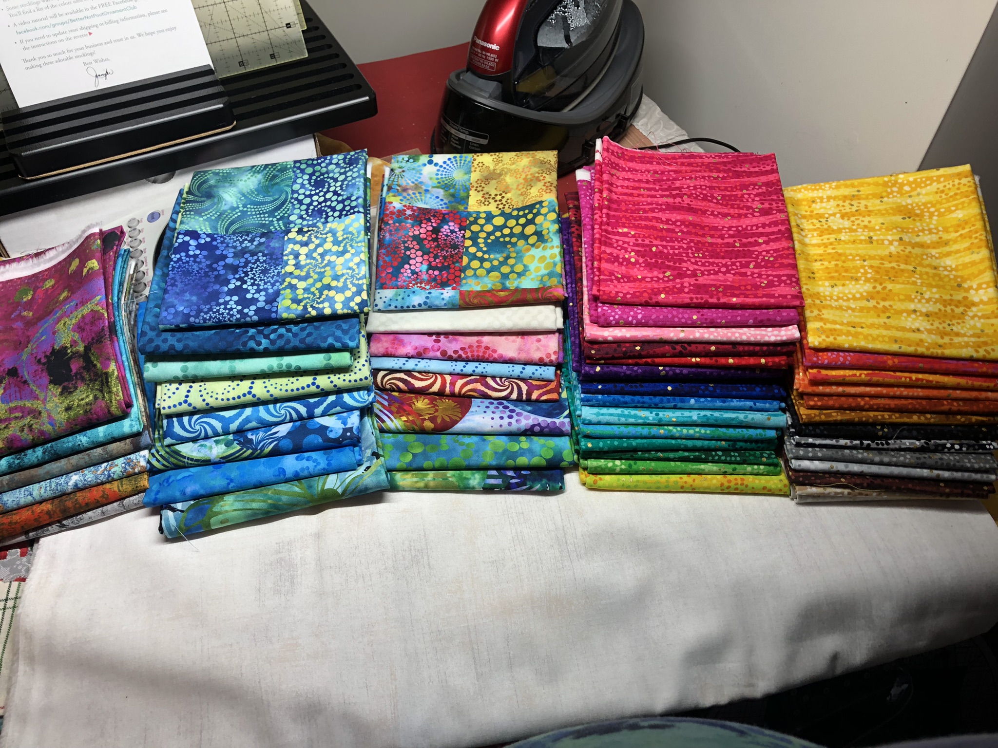 I was so excited when I watched the announcement about this beautiful quilt. It took me about 2 minutes to decide to order the kit, even though I have plenty of fabrics in my stash! The kit will encourage me to use more modern fabrics. My good friend and neighbor also ordered the kit. This morning I was awoken by my security system at 0602!! Someone was on my porch!!! I could see a van that looked like the mail logo....yes!!! It was my kit so fast!! The post office is living up to the poem about through dark of night!!