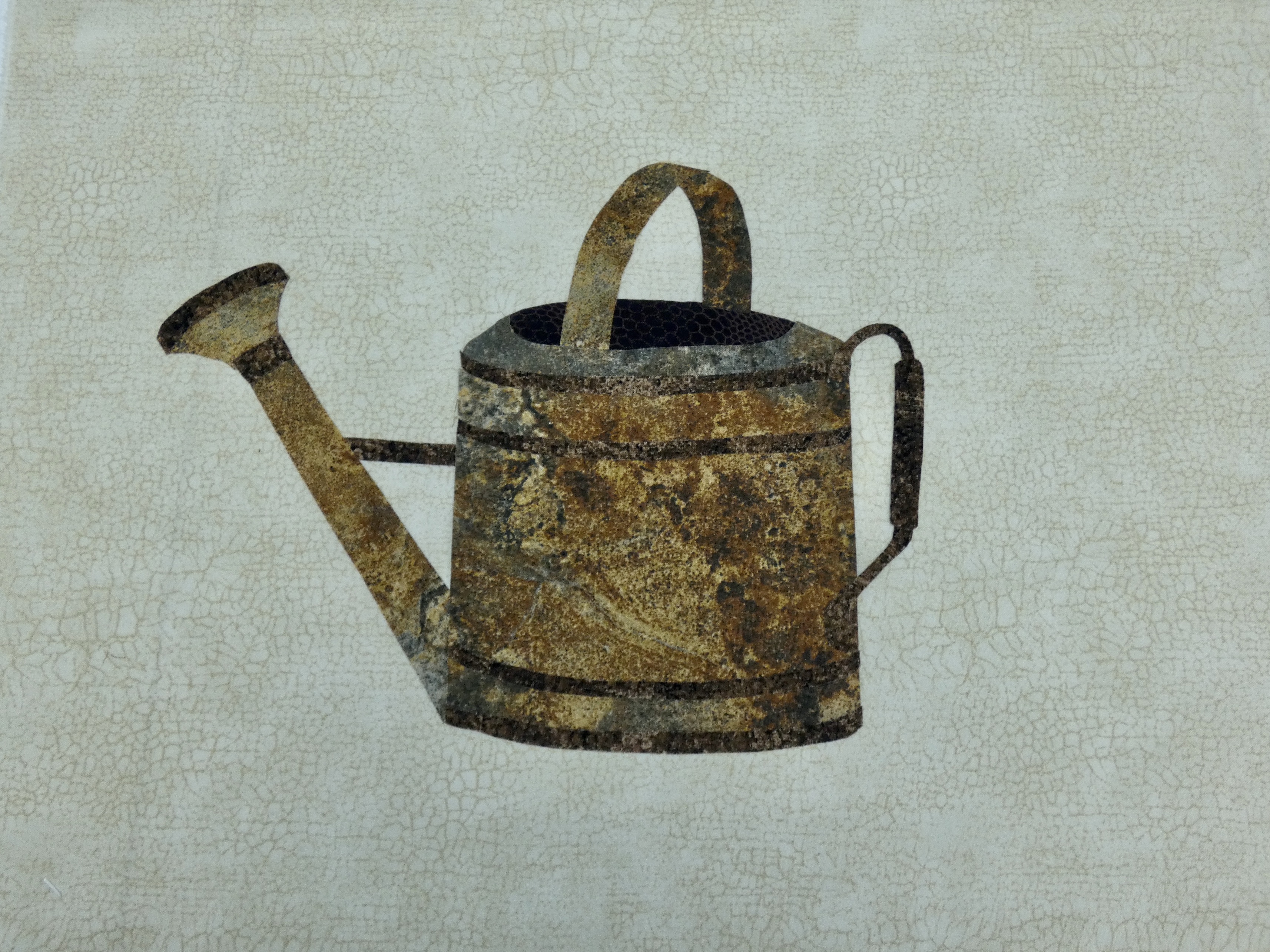 I take favorites from patterns, book clip art etc.and just put in what really makes me happy with the way it looks. I am not one to stay true to the pattern. I always have fun. Here is a picture of my vase replacement (a rusty watering can) and the background
