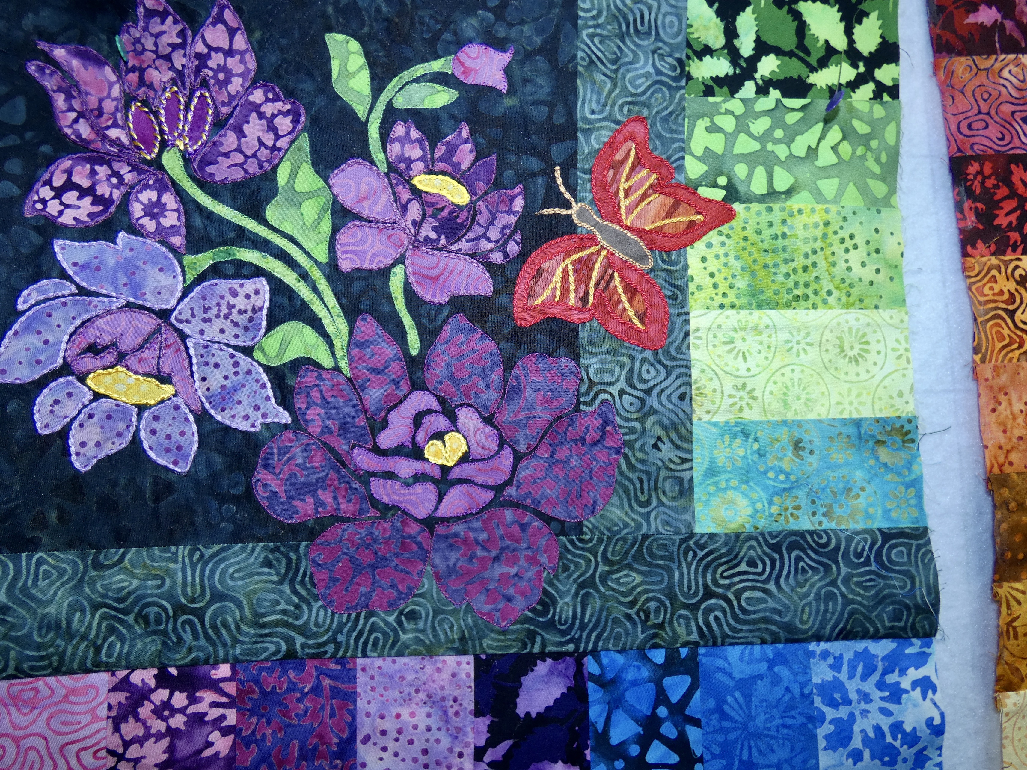 Thank you so much for your quick response and especially for your suggestions. I’m trying to plan my fabrics and wanted to use batiks so your ideas are a huge help. I’m way behind on Color My World and am racing to catch up! By the way, do you use the clear thread for your zig-zag? I like the couching idea and think I will try that too.