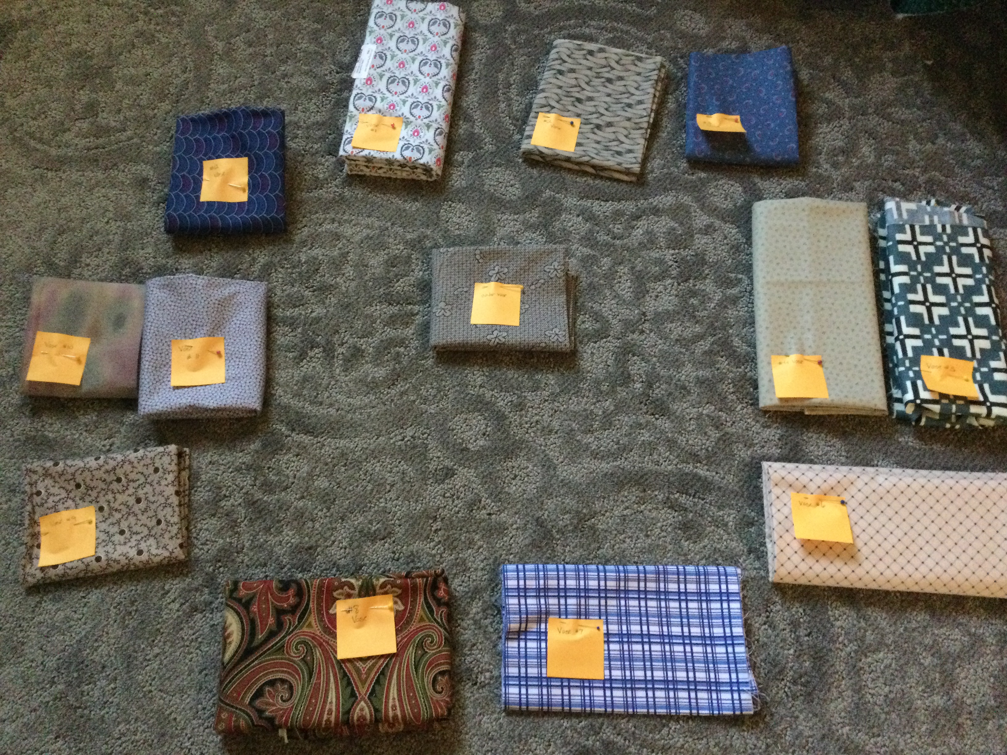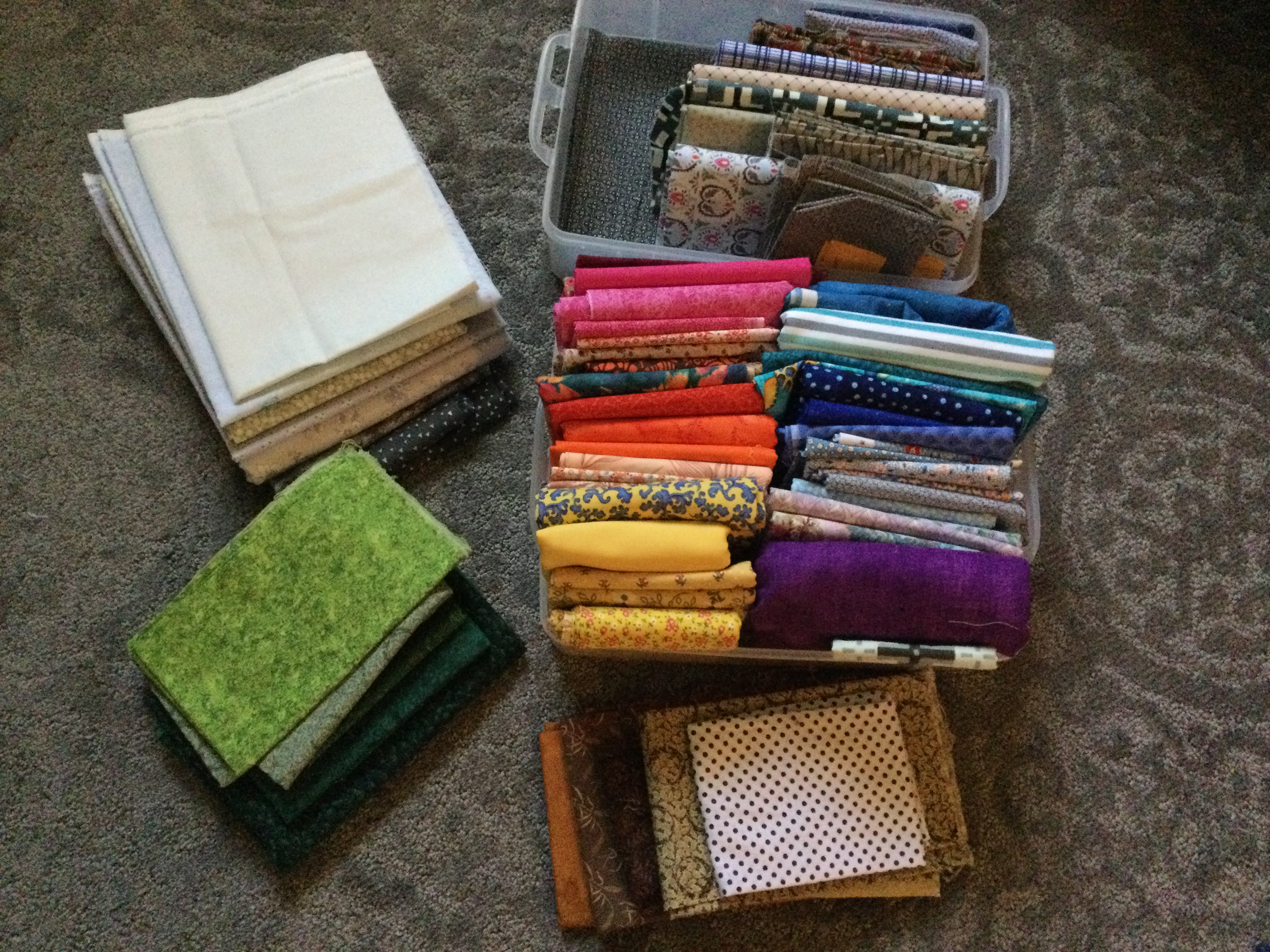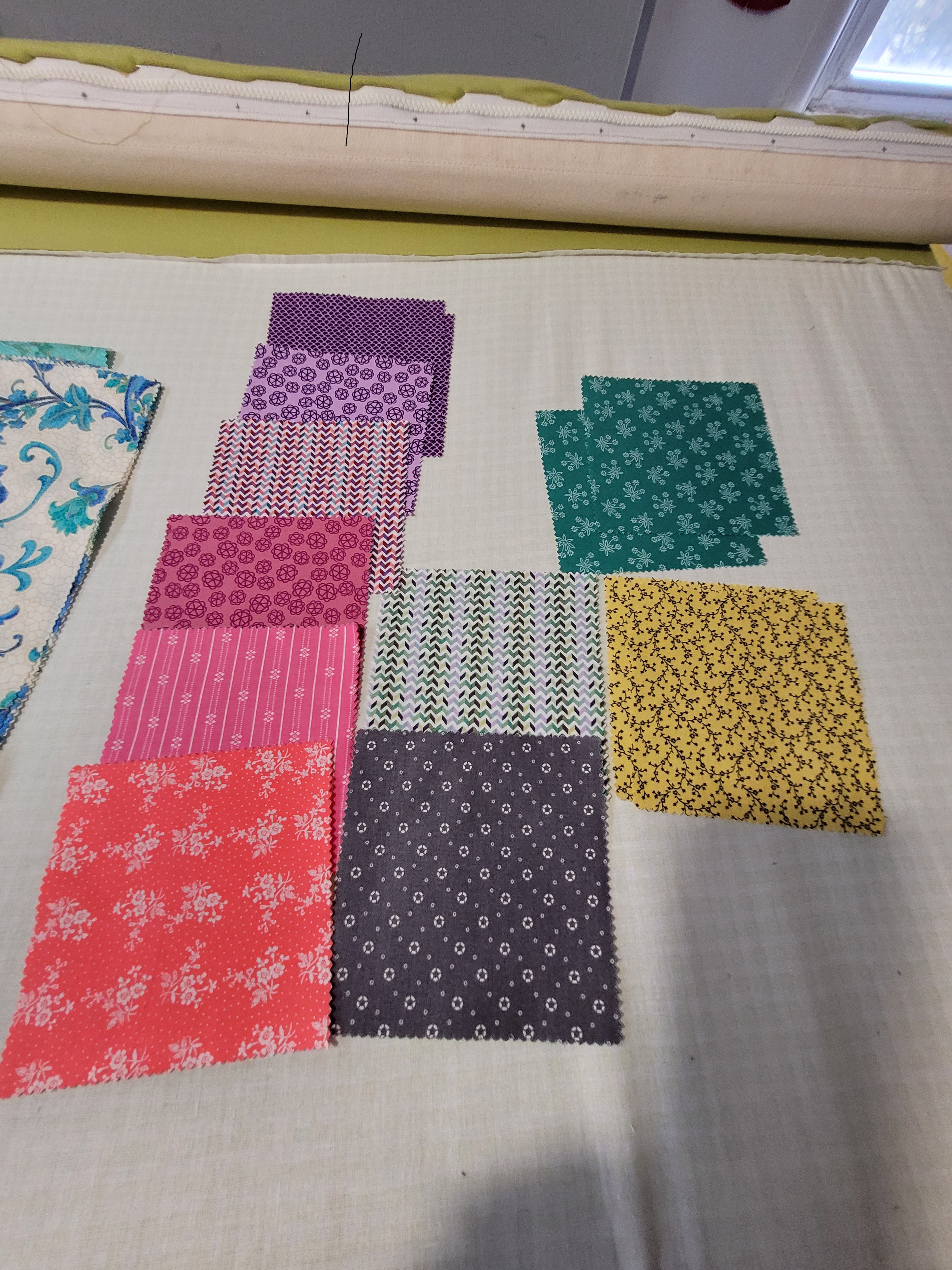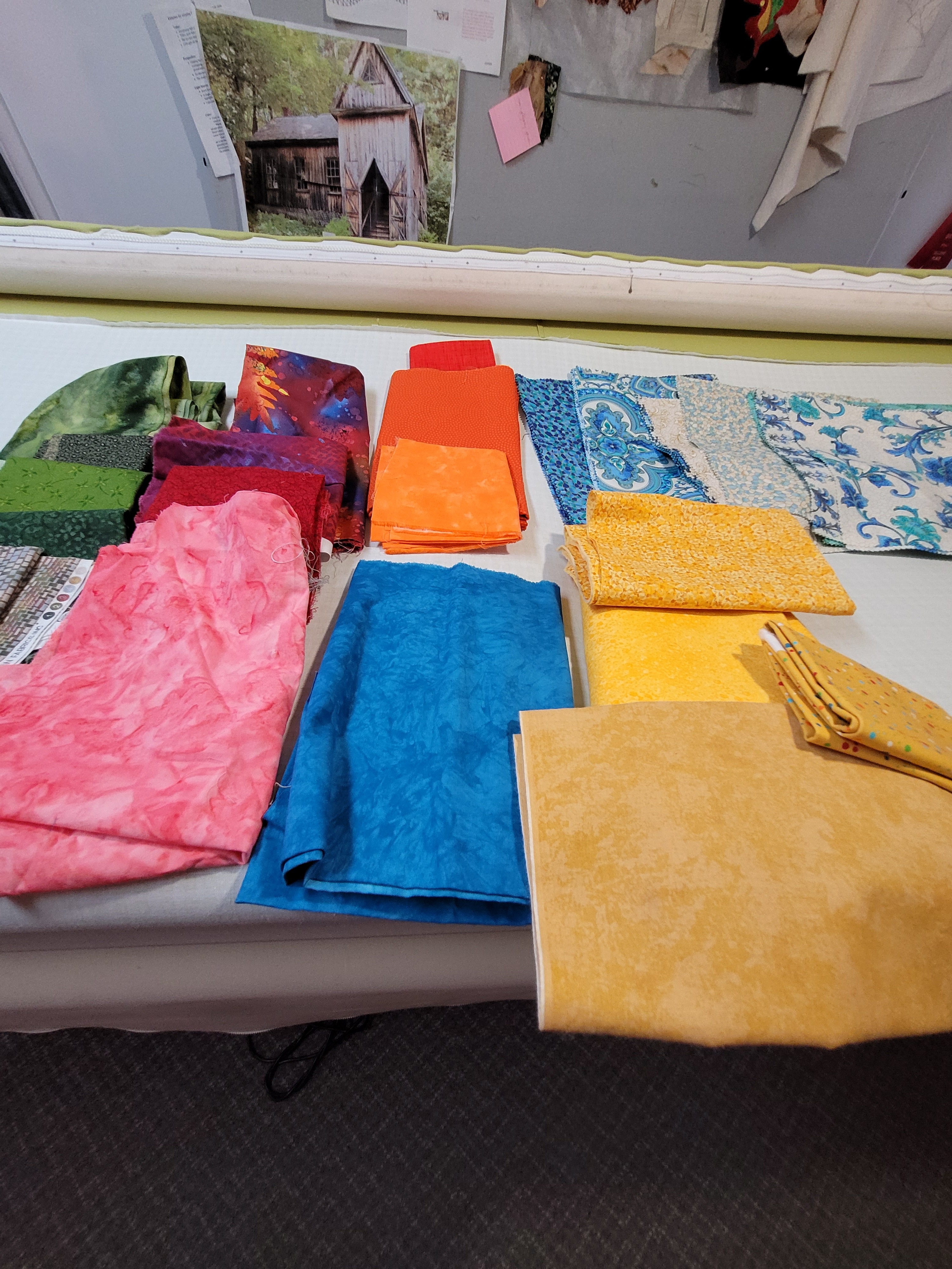 My plan is to use light to medium grays for background, bright colors for flowers and medium fabrics for my vases. Had fun yesterday going thru my stash.