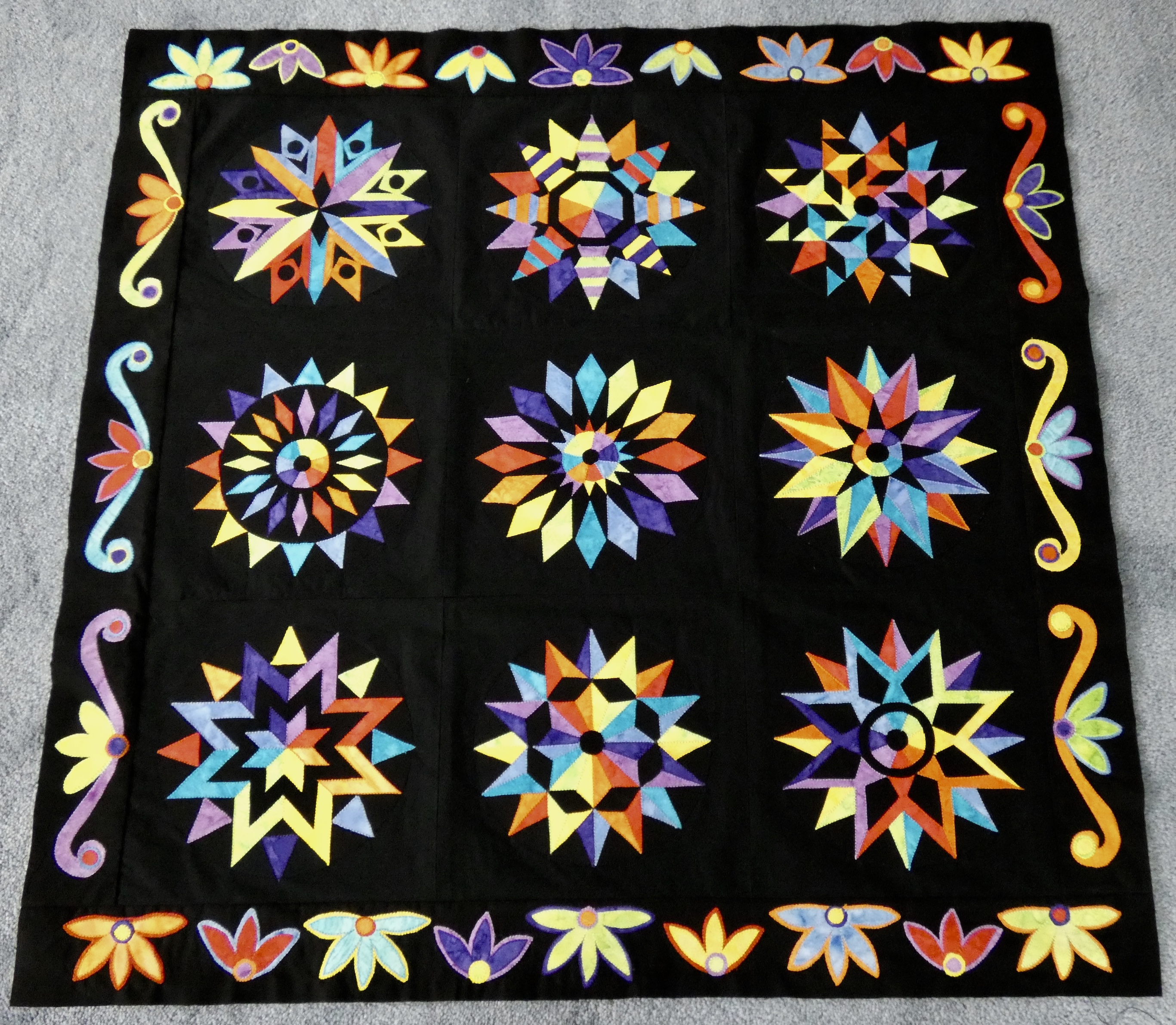 I am a dedicated raw-edge fusible appliquer and decided to do this quilt to stretch myself by doing it by hand.