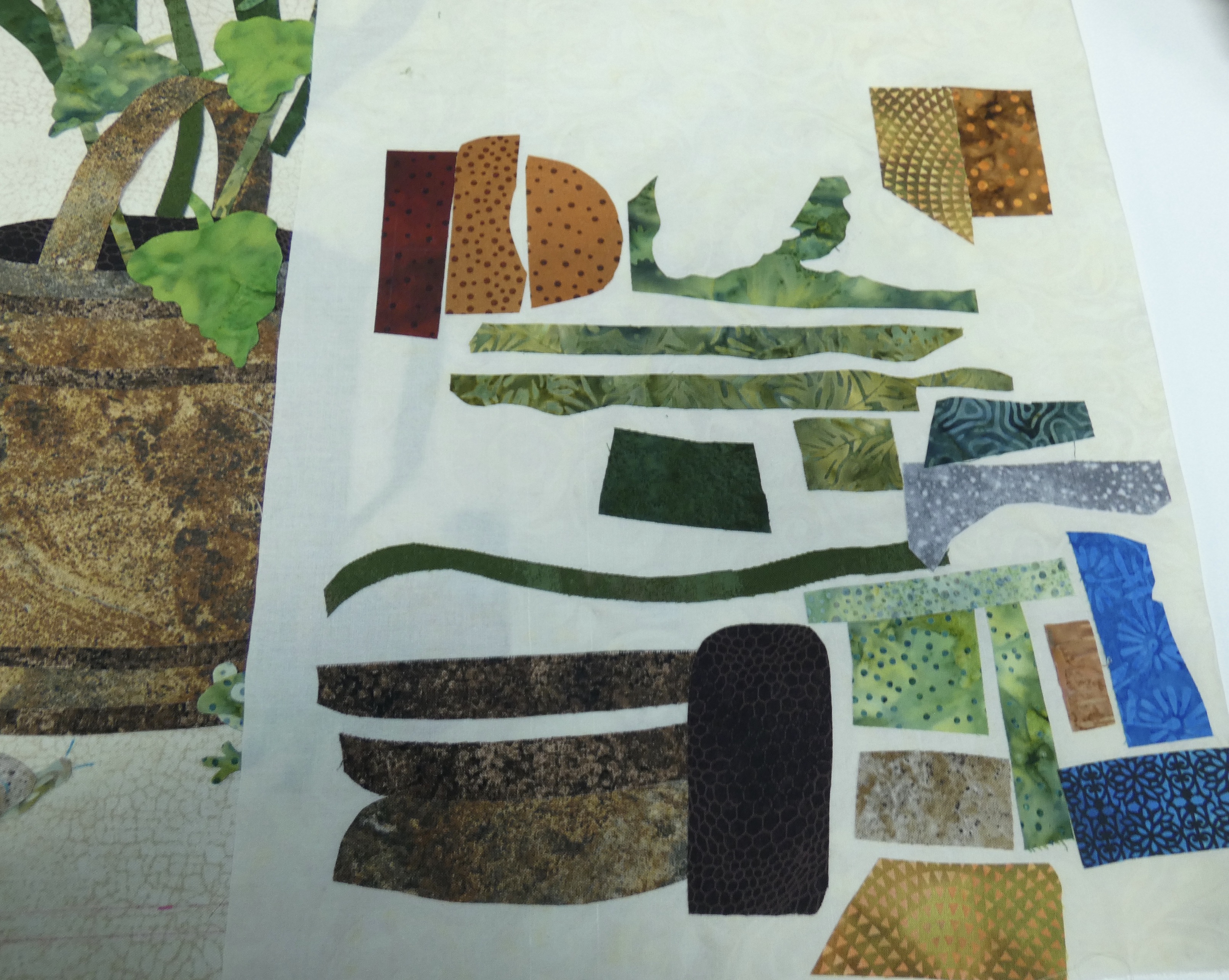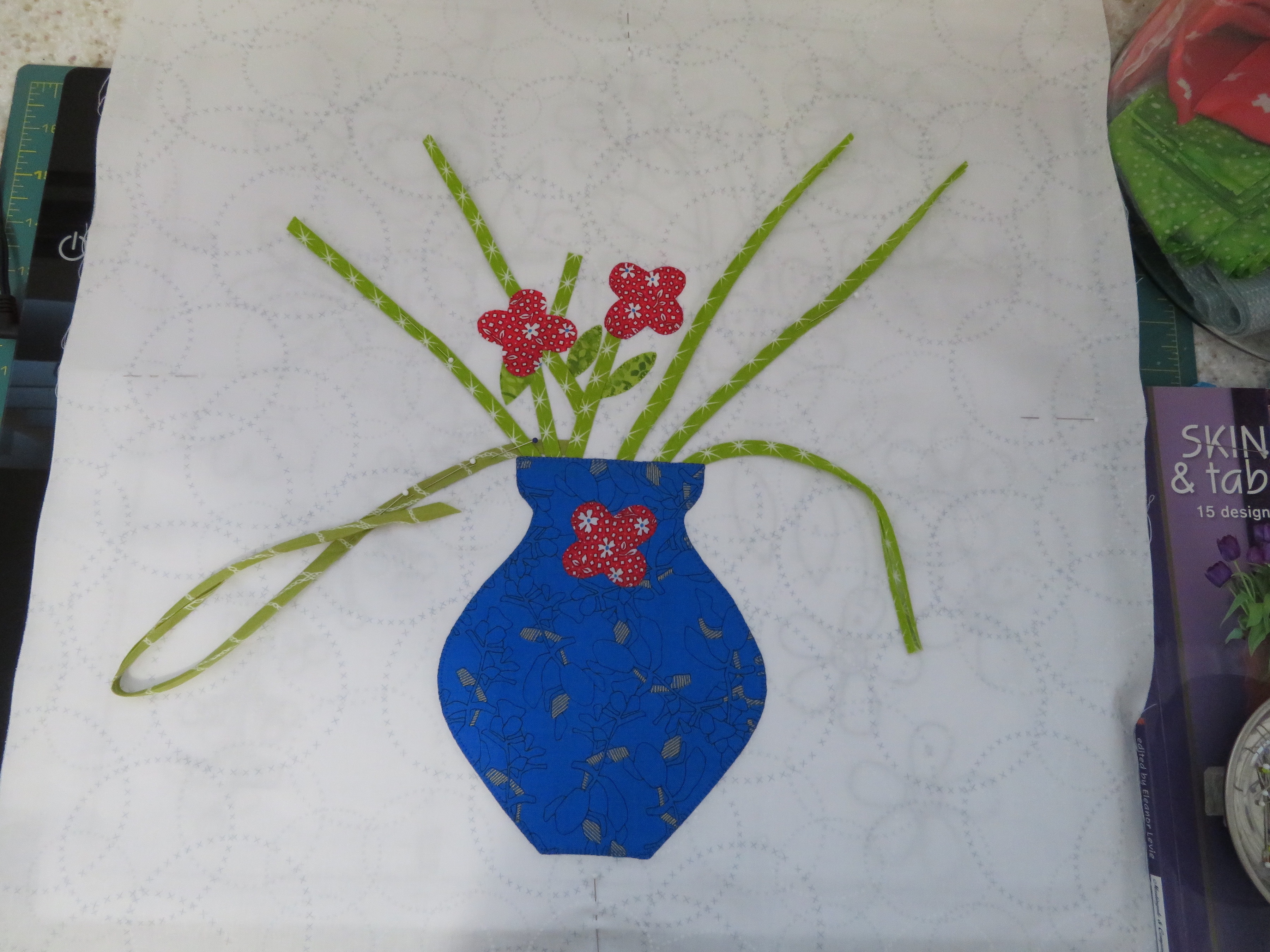 [QUOTE=donnaleeq;n890561]I have two days into Month One. Lots of loose stems still but my vase is done. I am doing it raw edge appliqué using a blanket stitch on my Bernina 2.0 by 2.0 stitch 1329. All going well thus far, but one has to be careful. Lots of overlays, I already have one I missed, but found an alternative solution. If I don't tell anyone once all is done, maybe no one will ever notice. [/QUOTE]